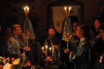 После малого повечерия все разошлись по домам, но ненадолго — уже в 21.30 началось самое длинное Всенощное бдение. Многие прихожане пришли с детьми. При свете только зажженных свечей раздался возглас Владыки. Хор ответил распевами на греческом языке. На нем же исполнялись все ектеньи.