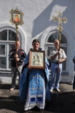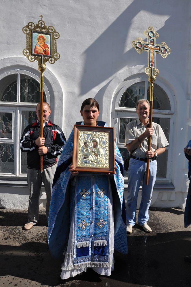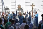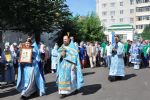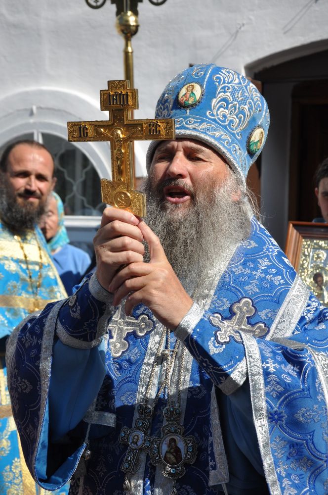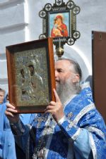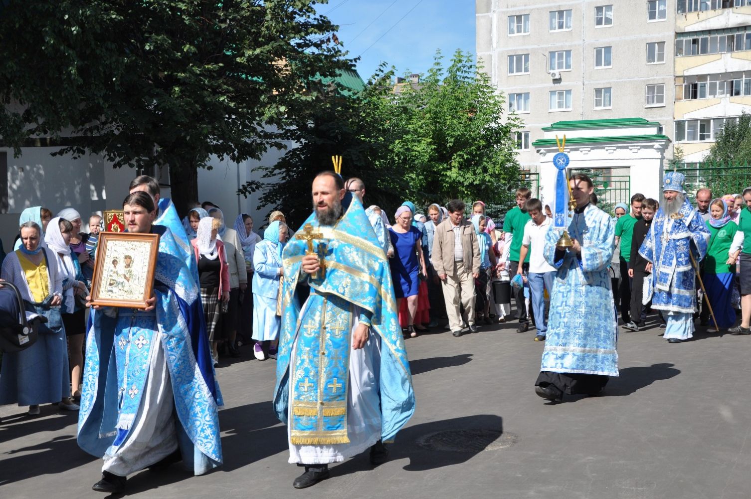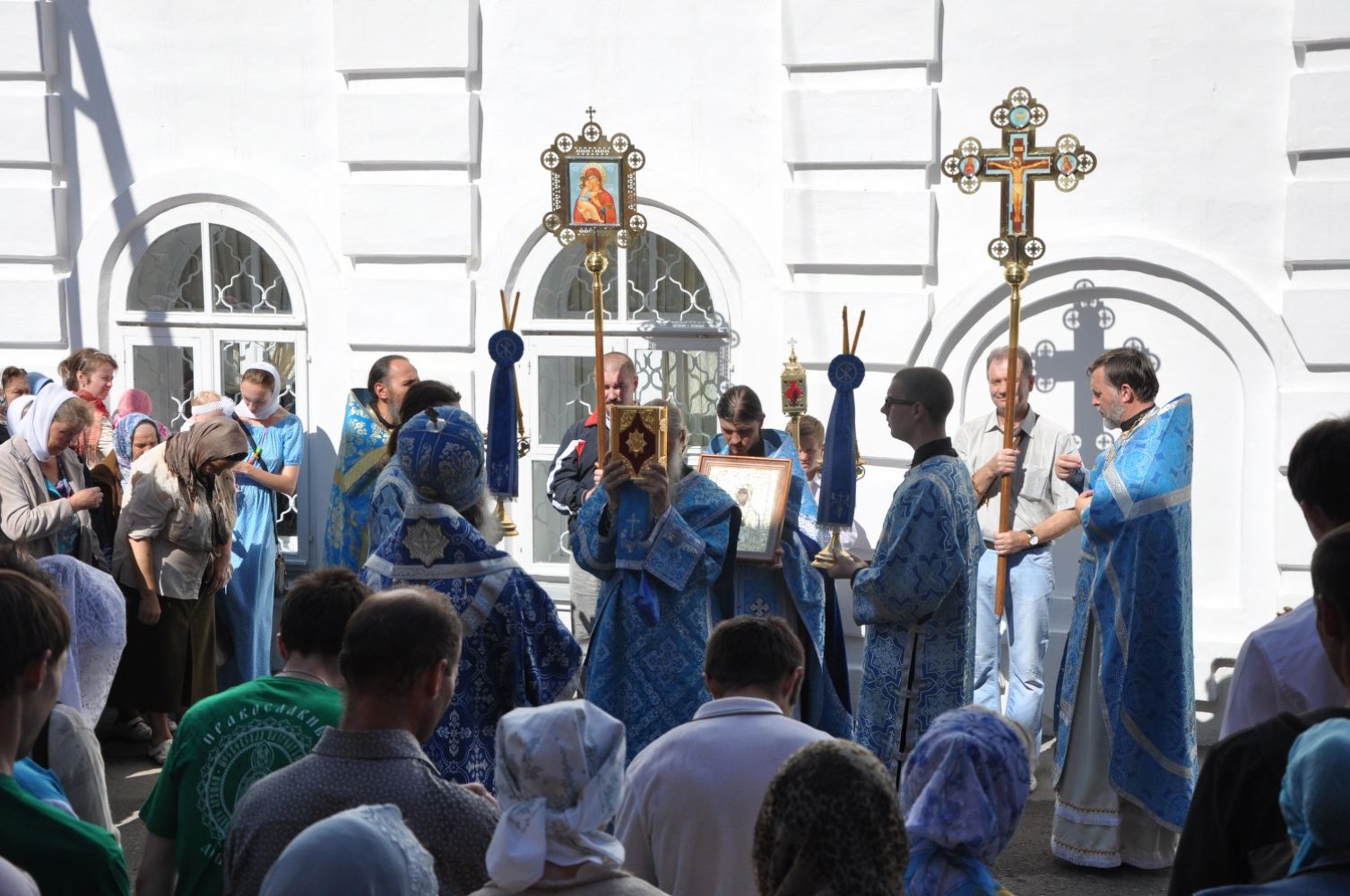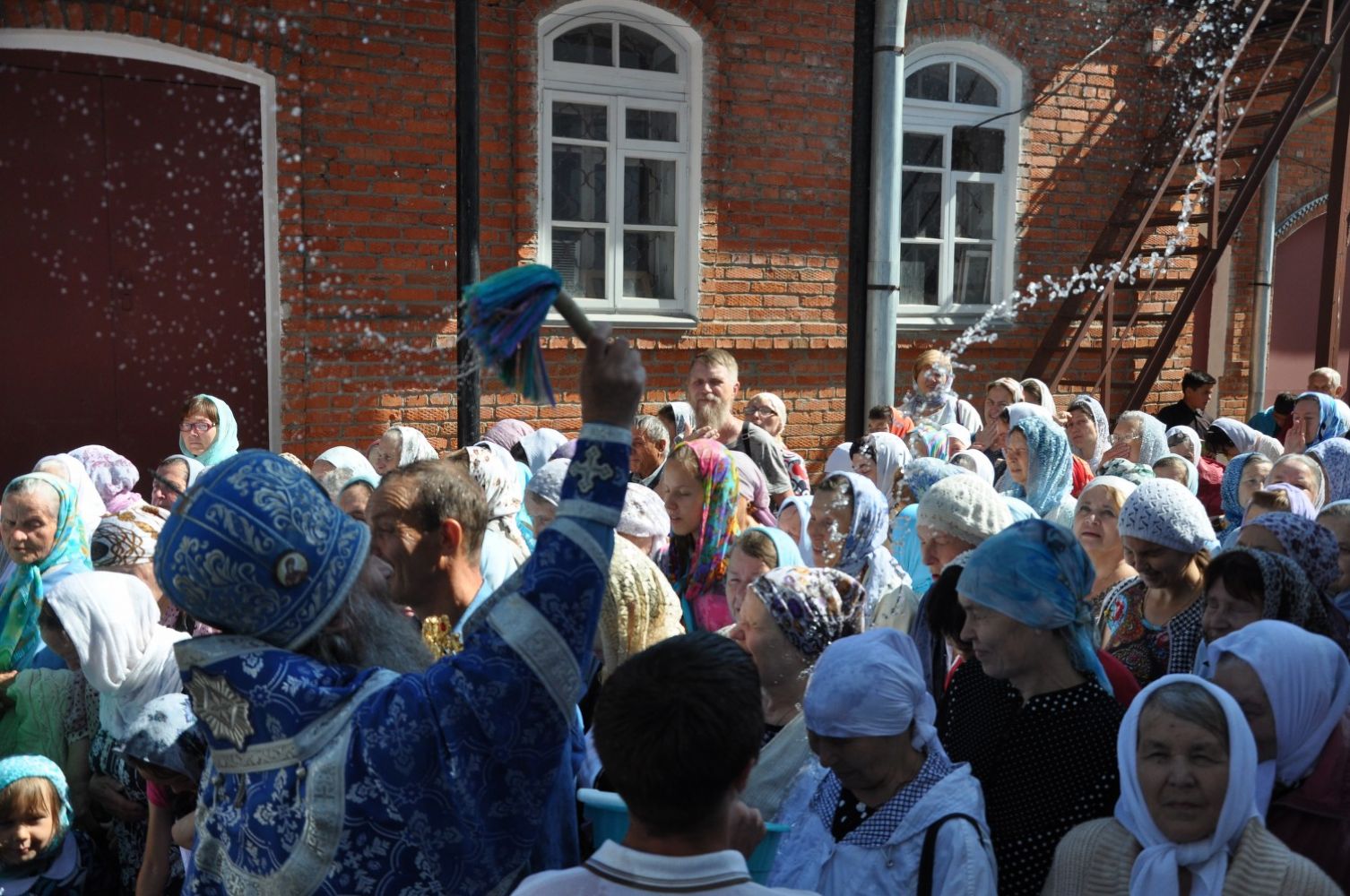 После водосвятного молебна началась Божественная литургия. Большинство причастились Святых Христовых Тайн. Обойдя крестным ходом здание Епархиального управления, прихожане остановились у входа, чтобы приложиться к иконе Пресвятой Богородицы «Троеручица» и внять архипастырскому слову Владыки.