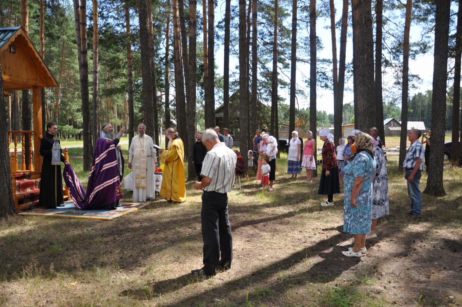 В заключение визита в Килемарский район, Владыка совершил освящение часовни в честь иконы Божией Матери «Неопалимая Купина» в д. Хим в сослужении настоятеля храма Рождества Христова с. Арда протоиерея Сергия Колобкова. В связи с частыми пожарами, по просьбе местных жителей д. Хим и благословения Владыки с 2014 года началось строительство часовни в честь иконы Божией Матери «Неопалимая Купина».