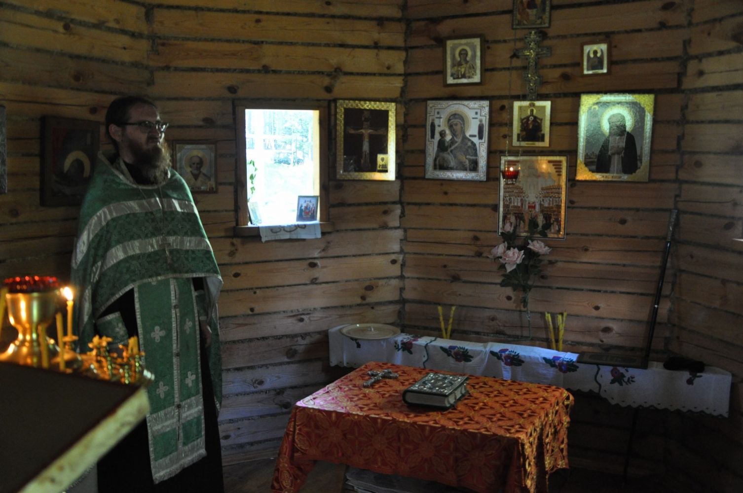 Владыке сослужил клирик Вознесенского собора г. Йошкар-Олы иерей Александр Деревяшкин. Богослужебные песнопения исполнили дети, отдыхающие в поселении на территории озера Чокаер. Владыка совершил помазание елеем всех молившихся на Богослужении.