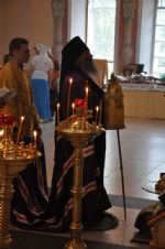 Владыке сослужил настоятель храма митрофорный протоиерей Николай Барсуков. Богослужебные песнопения исполнил хор храма под управлением регента Марины Барсуковой.