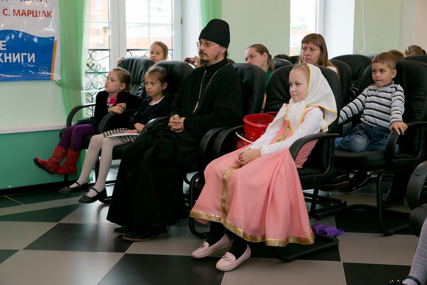 В комнате сказок (так называется отдел библиотеки для самых маленьких посетителей) прошла работа площадки «Сказка в дом приходит». В рамках ее работы выступил кукольный театр прихода храма Тихвинской иконы Богородицы города Йошкар-Олы со спектаклем «Маша и медведь». Семейное чтение марийской народной сказки «Учёный медведь» провела Ирина Сергеевна Татаринова, уполномоченный по делам человека в РМЭ. Мастер-класс домашнего кукольного театра «Ложка-сказочница» провела Маргарита Карасёва, воспитатель Люльпанского центра для детей-сирот и детей, оставшихся без попечения родителей» вместе с детьми 5 класса. Также здесь была проведена презентация «Святые покровители». В завершение все посмотрели фрагмент мультфильма «Сказание о Петре и Февронии».