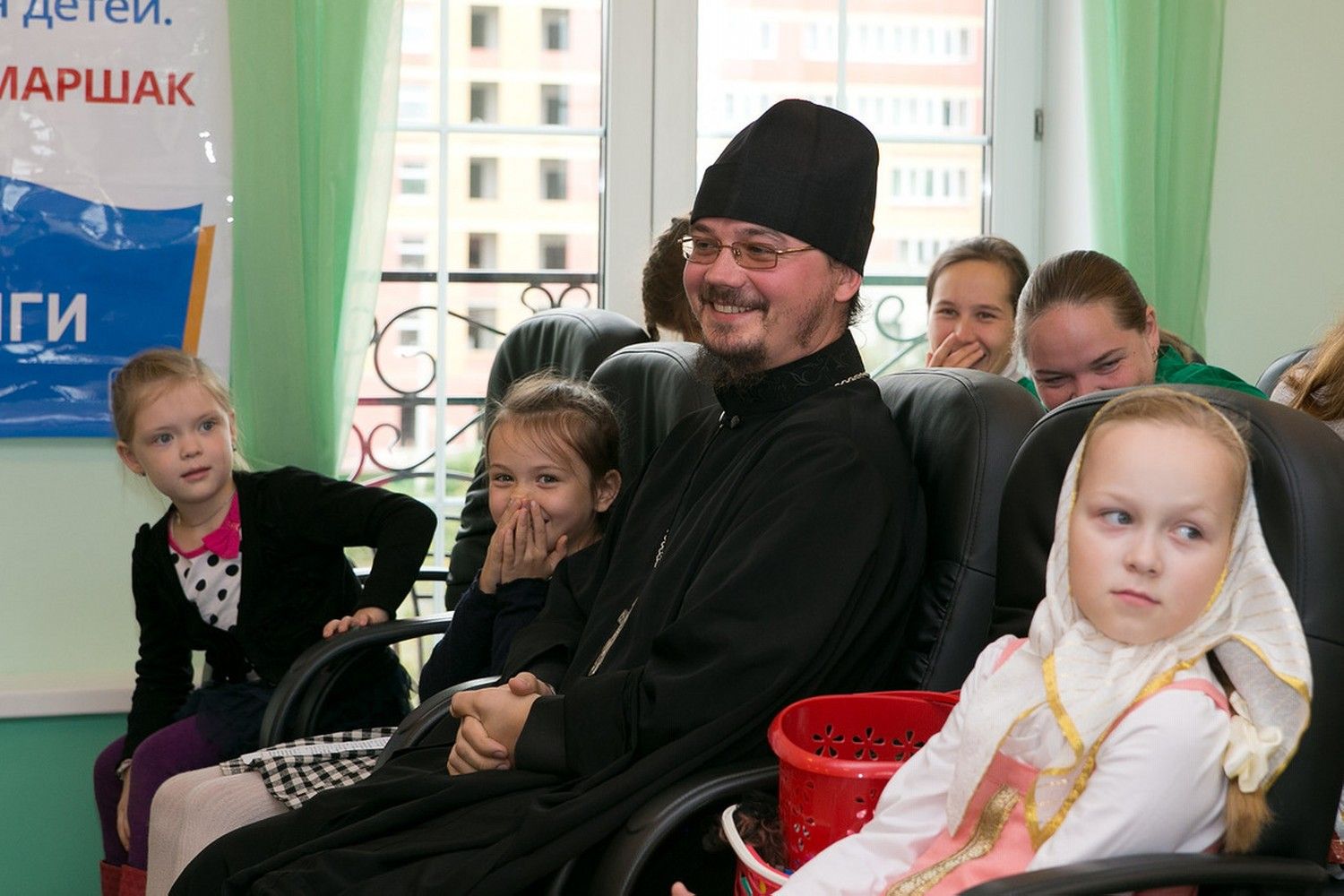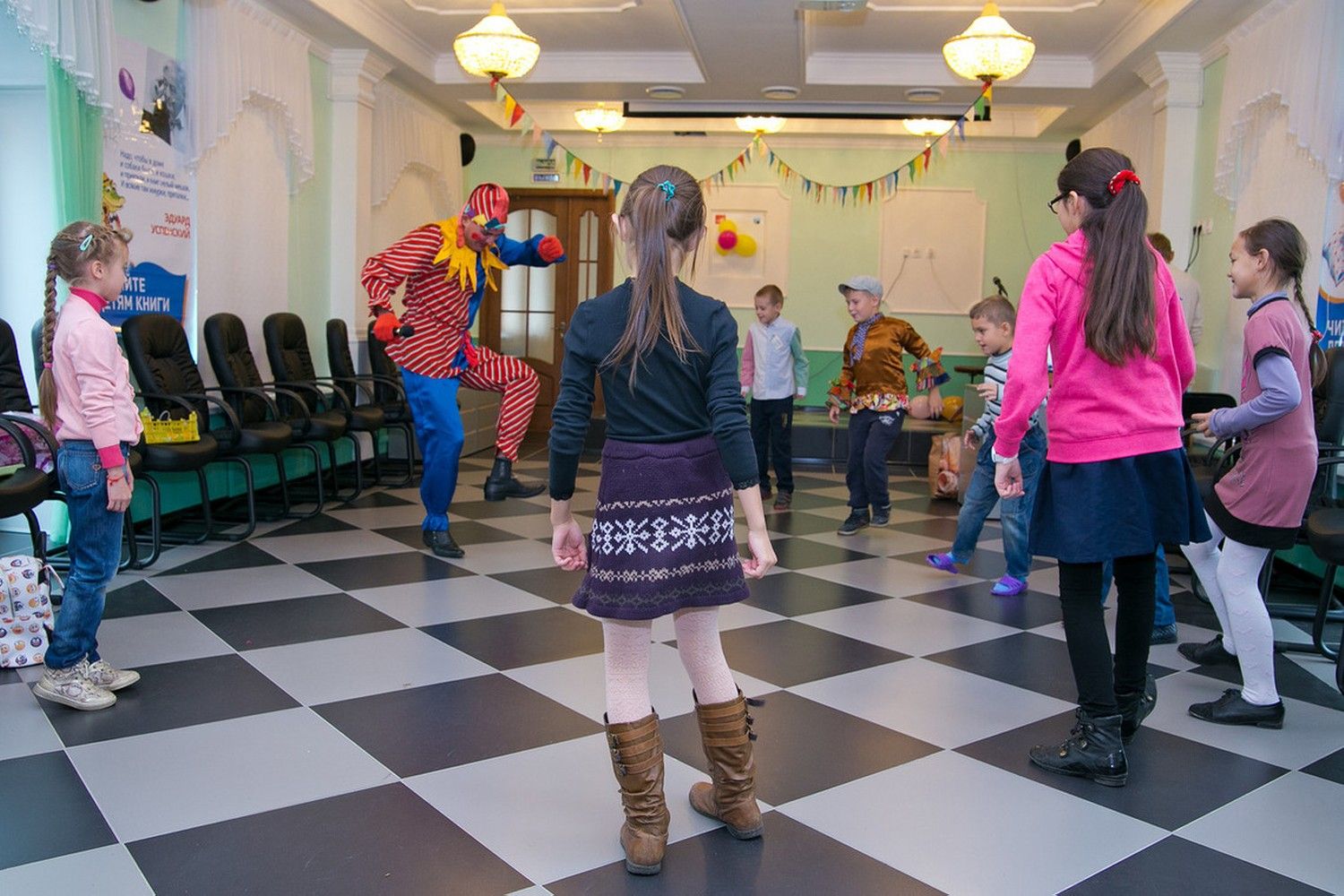 После молебна праздничные мероприятия прошли в Республиканской детско-юношеской библиотеке им. Колумба. Открылся праздник небольшим концертом. По всей библиотеке работали различные тематические площадки: игра-ярмарка «Сами с усами», семейное интервью, мастерская счастья.