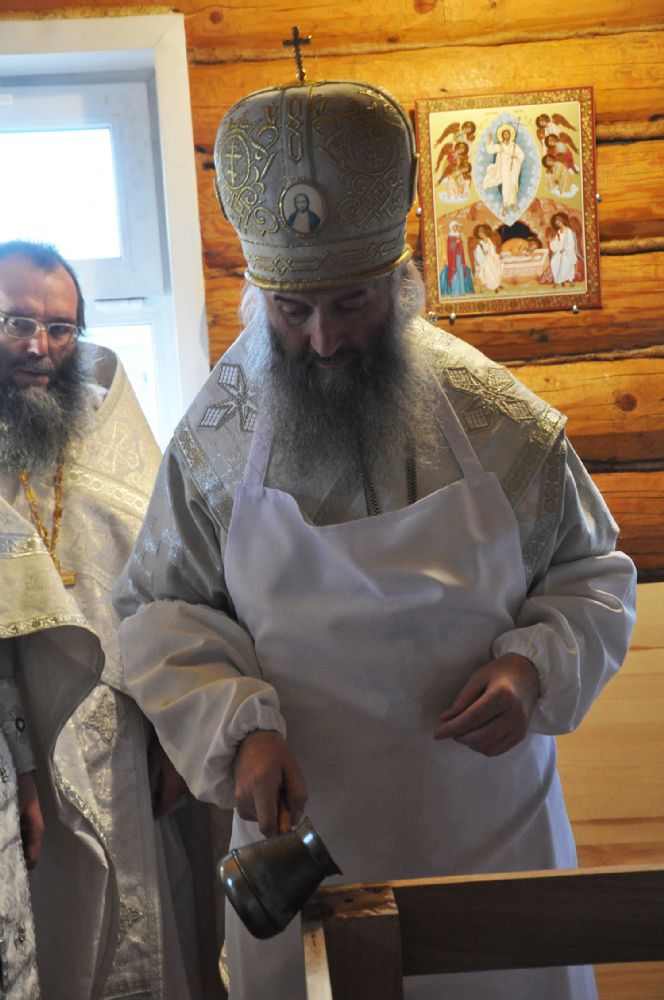По завершении, обращаясь к пастве, Владыка сказал: «Всех вас, возлюбленные братья и сестры, поздравляю с великим днем, днем, который святитель Феофан Затворник именует «малой пасхой». Благодать Всесвятого Духа освятила сегодня это здание, созданное руками человеческими, и оно стало храмом Божиим, в котором обитает сам Господь, ниспосылая нам от купели святого крещения благодать Всесвятого Духа и провожая нас в вечную жизнь. Молитвы благословенные ниспосылая на нас для прохождения тех мытарств, который проходит каждый из нас. Сегодня многие из нас были первый раз на освящении храма и видели, как этот Чин для нас является непостижимым и в самом Чине открывается нам существо великого освящения храма Божьего».