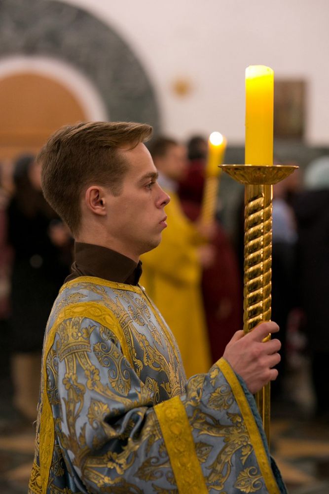 Всенощное бдение сопровождалось сурдопереводом. Наряду с другими за богослужением молились члены общины глухих и слабослышащих людей при Благовещенском соборе. Переводили молитвы, богослужебные возгласы и песнопения на жестовый язык Михаил Виногоров и иерей Игорь Шиляев, настоятель Царево-Константиновской Знаменской церкви г. Кирова, руководитель Вятской православной общины глухих и слабослышащих.