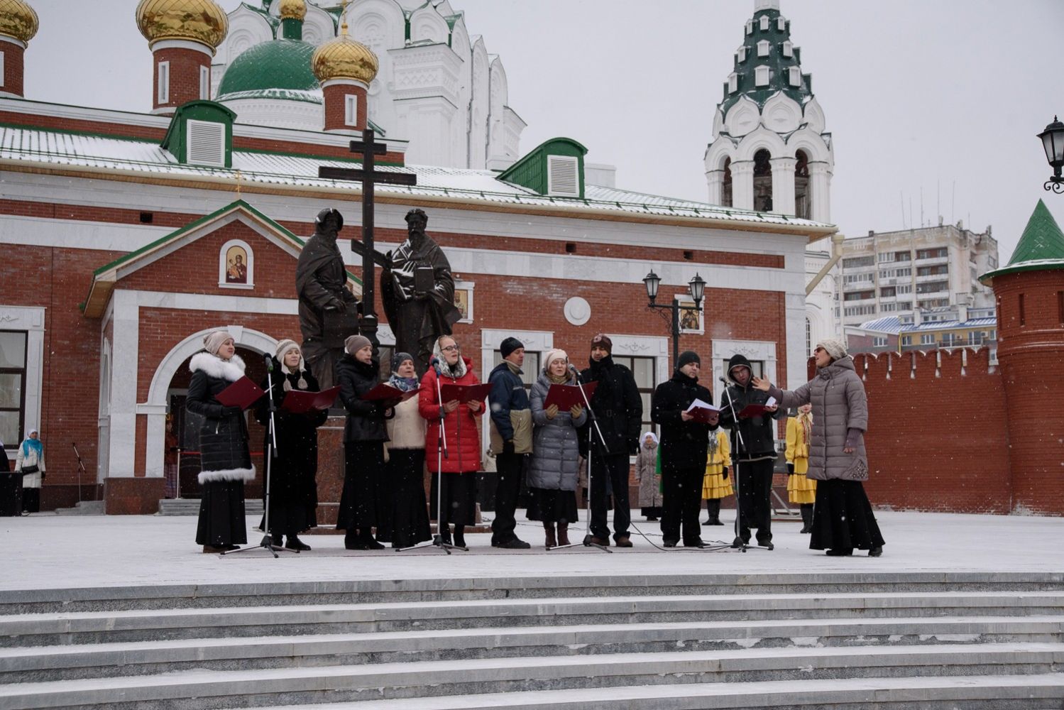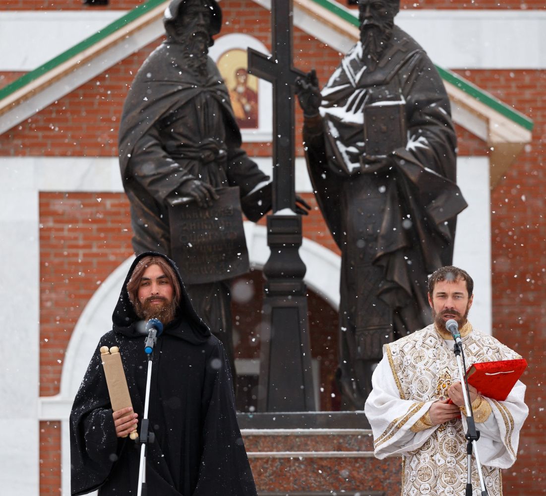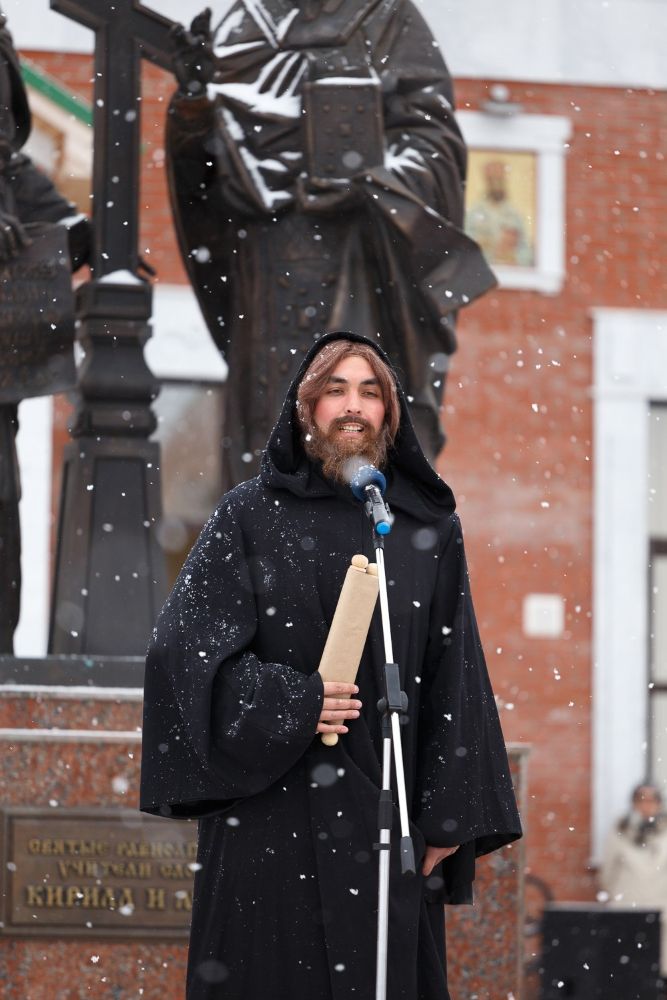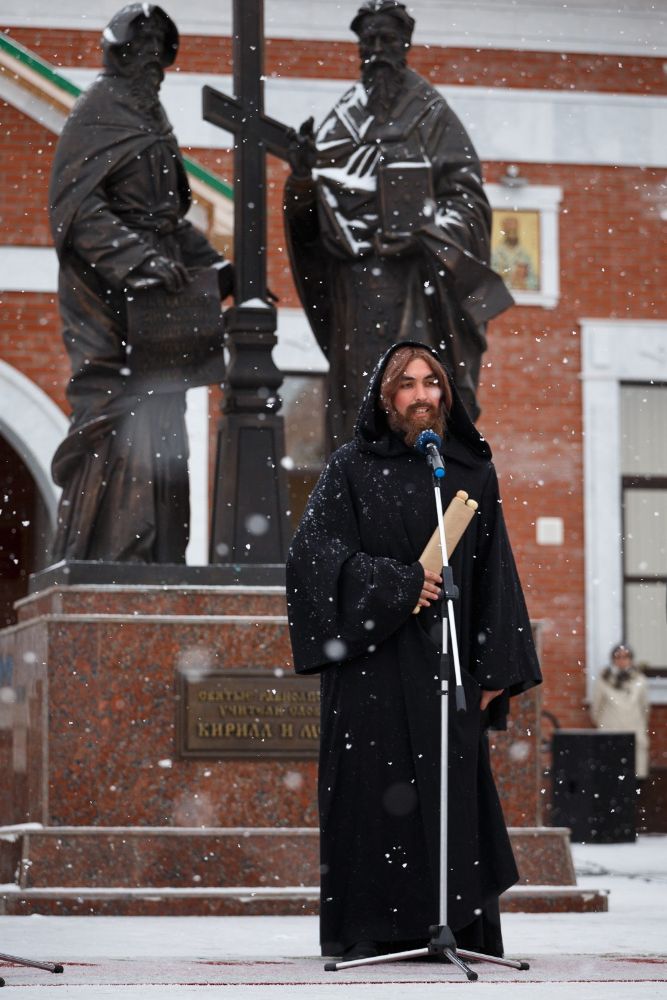 Торжественную часть открытия украсили артисты в образе святых Кирилла и Мефодия, а так же своим исполнение порадовал хор Троицкого храма г. Йошкар-Олы.