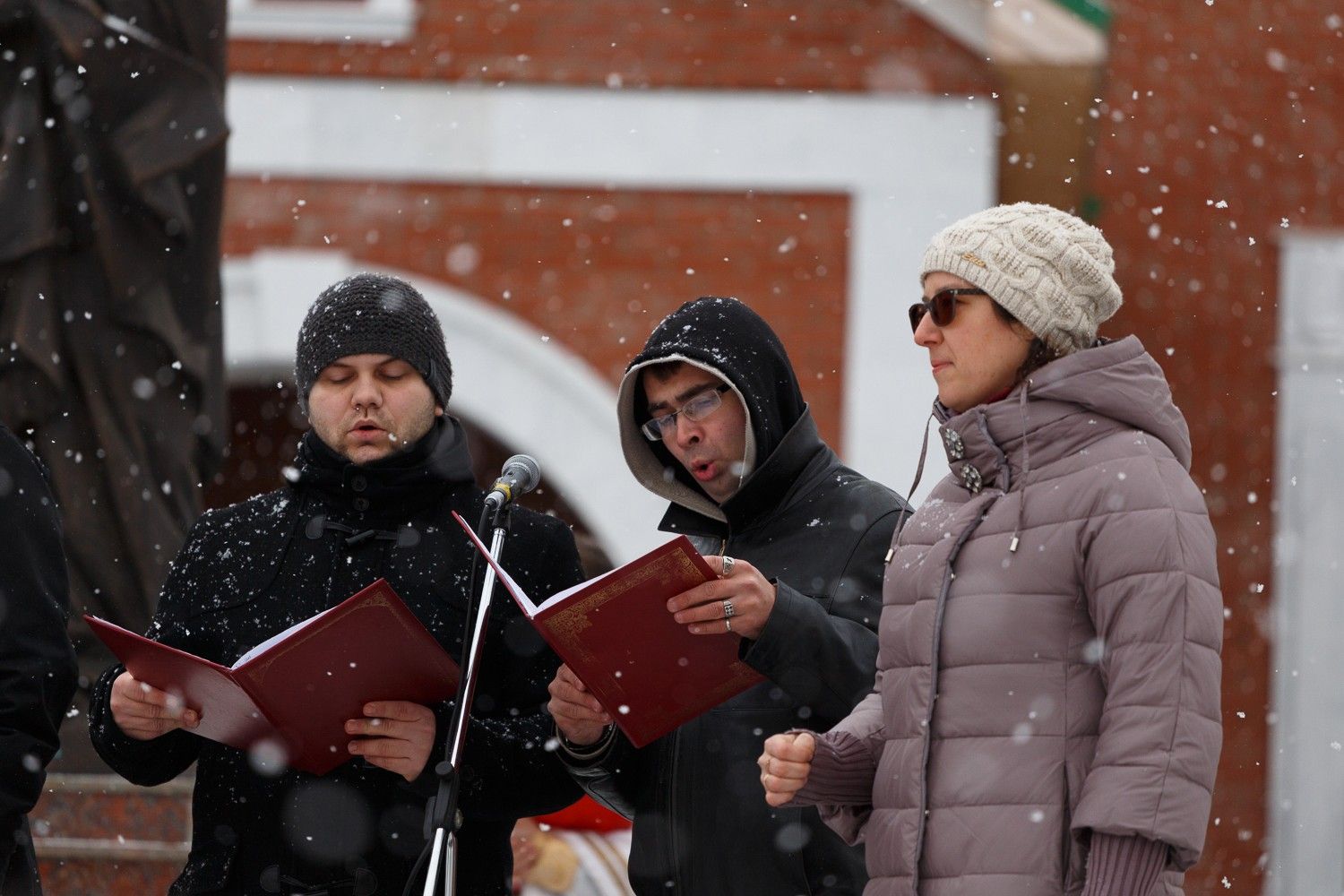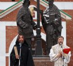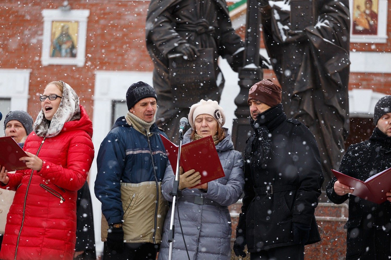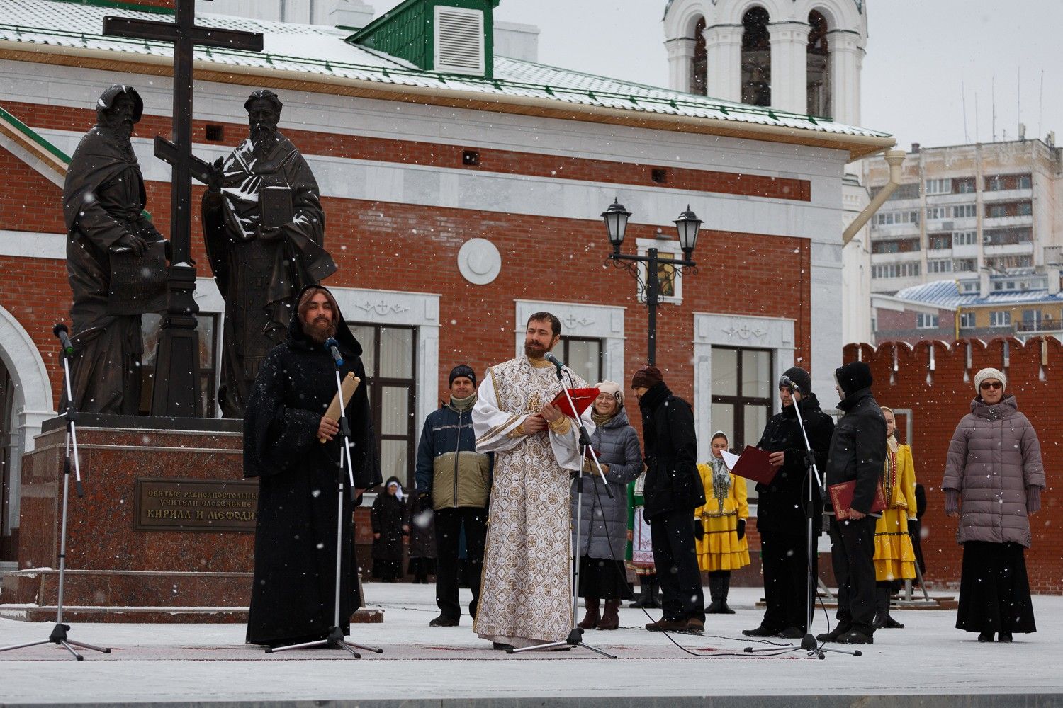 Торжественную часть открытия украсили артисты в образе святых Кирилла и Мефодия, а так же своим исполнение порадовал хор Троицкого храма г. Йошкар-Олы.