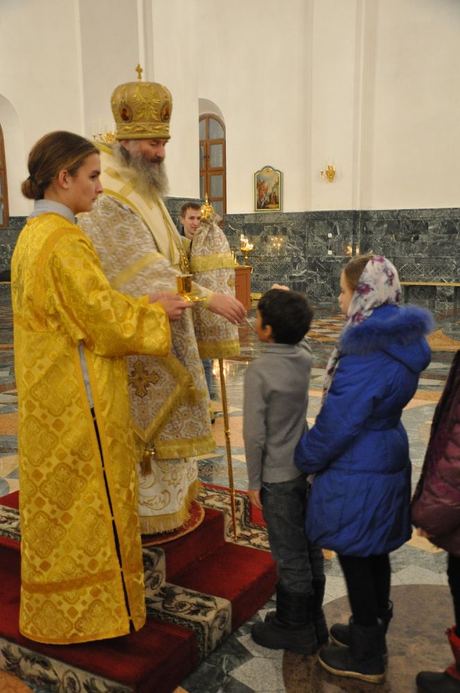 После чтения Евангелия Владыка совершил помазание елеем всех верующих, молившихся за богослужением.