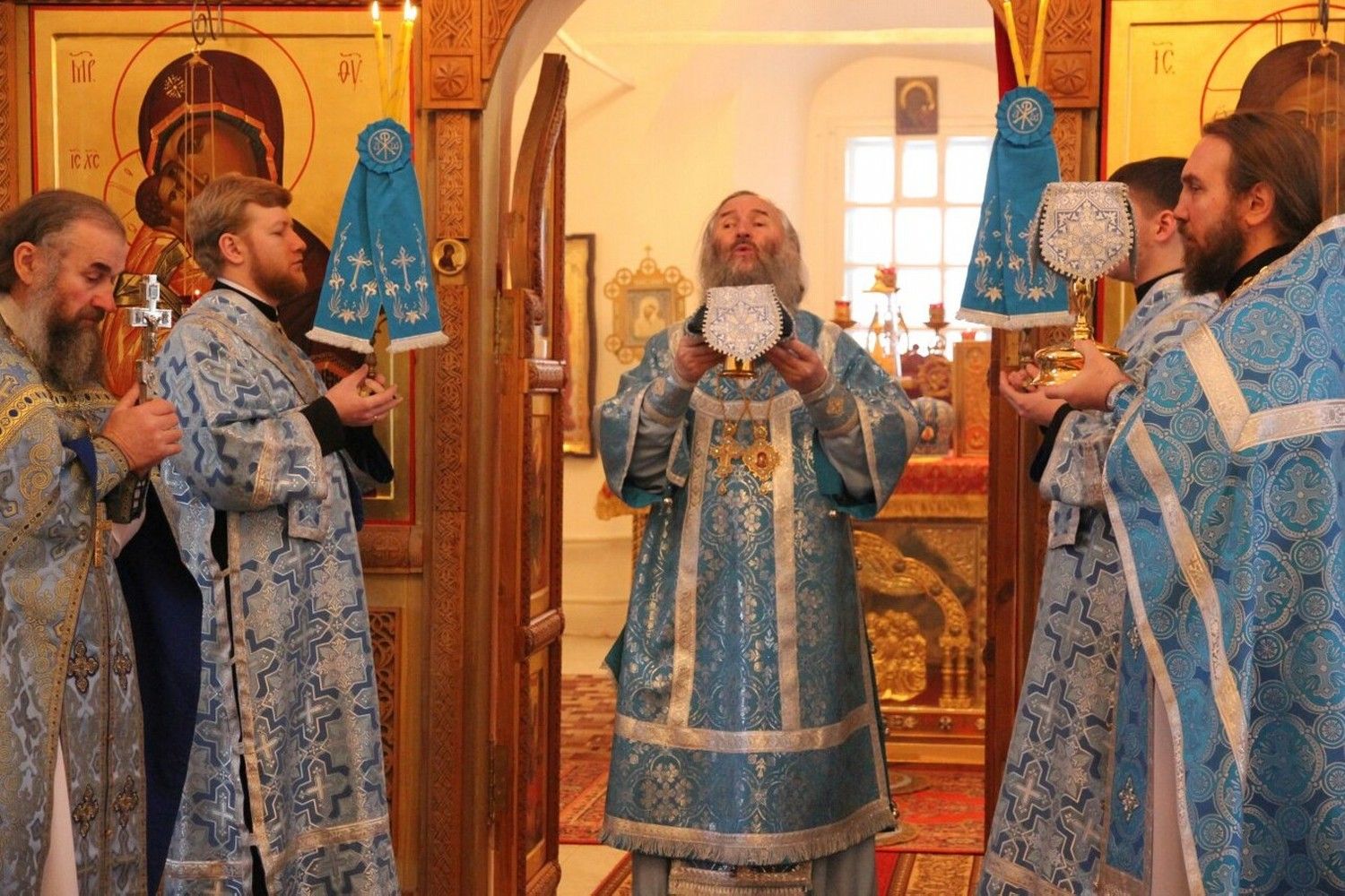 Владыке сослужили: настоятель храма протоиерей Александр Бачурин и клирики храма: иереи Константин Домрачев, Виктор Умрихин и Николай Бабич.