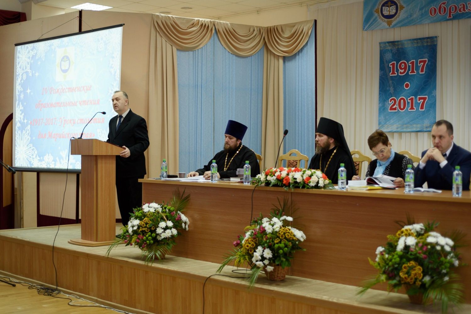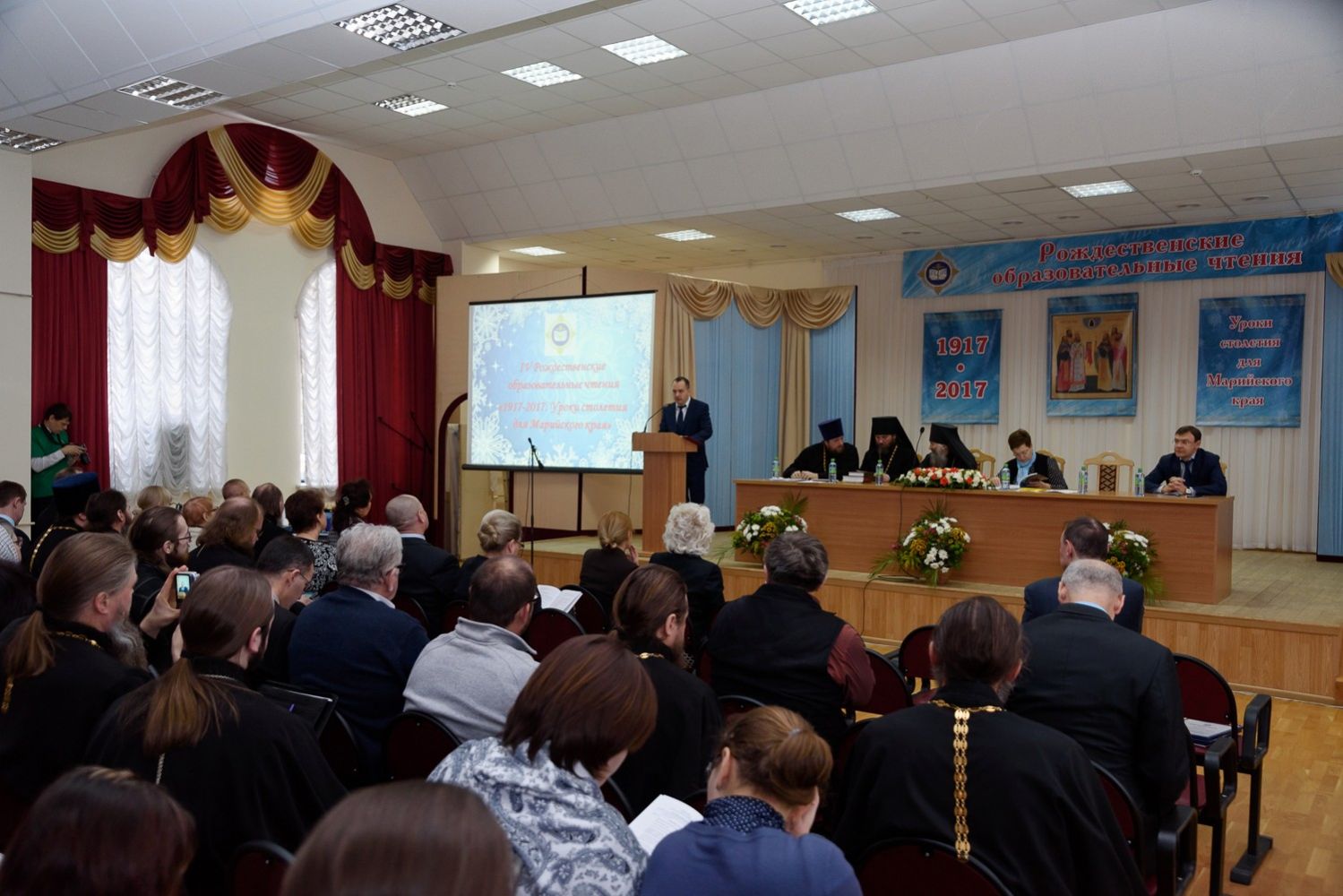 Сегодня в Православном центре Йошкар-Олы прошло пленарное заседание IV региональных Рождественских образовательных чтений по теме «1917–2017: Уроки столетия для марийского края». Уже в течение нескольких месяцев работа Чтений проводится по 10 направлениям в различных формах: круглые столы, выставки, творческие конкурсы, семинары и т.д.