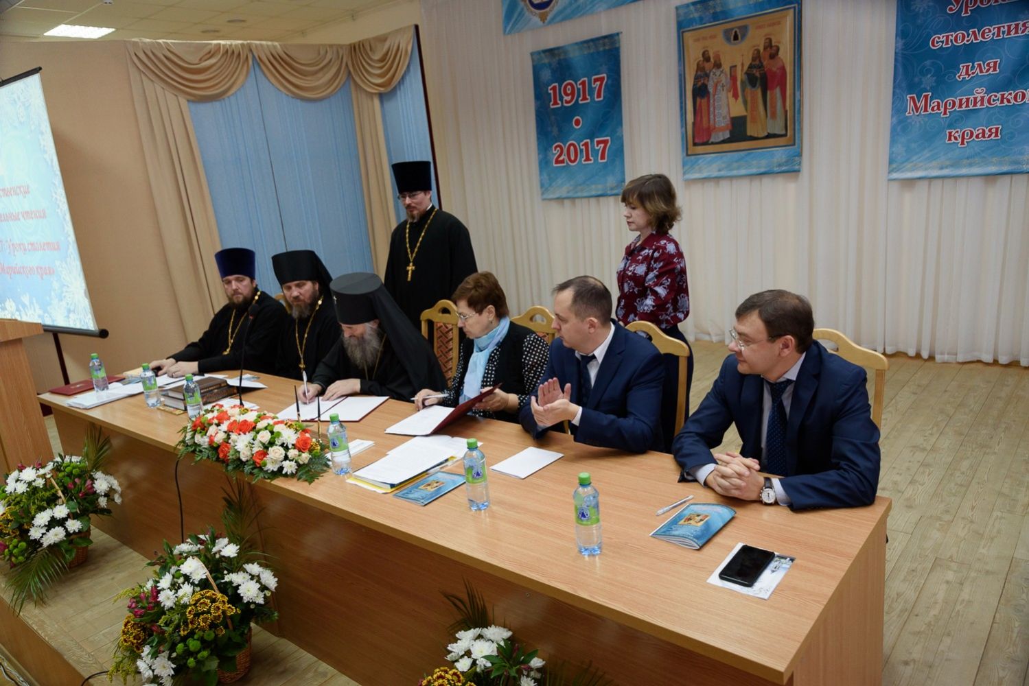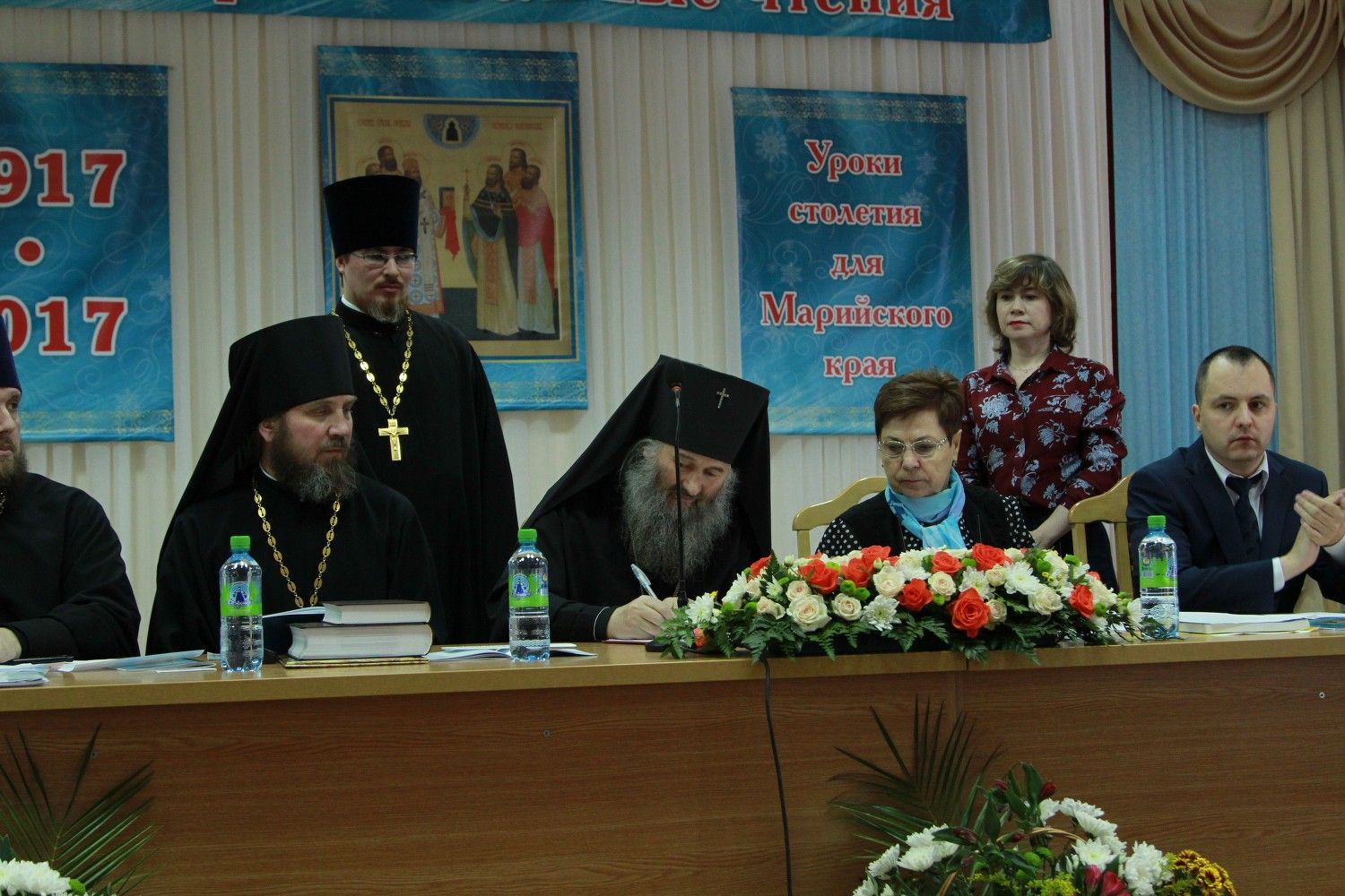 «Начало Великой российской революции: февральский переворот 1917 года» так звучит тема доклада С.В. Старикова, профессора кафедры отечественной истории МарГУ. О новомучениках и исповедниках Церкви Русской на Марийской земле рассказал протоиерей Михаил Ильин, руководитель комиссии по канонизации святых, клирик храма Рождества Пресвятой Богородицы с. Семеновка.