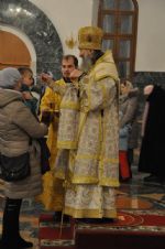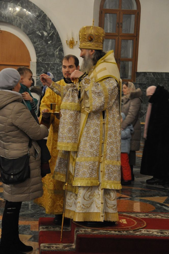 После чтения Евангелия Владыка помазал елеем молящихся на богослужении.