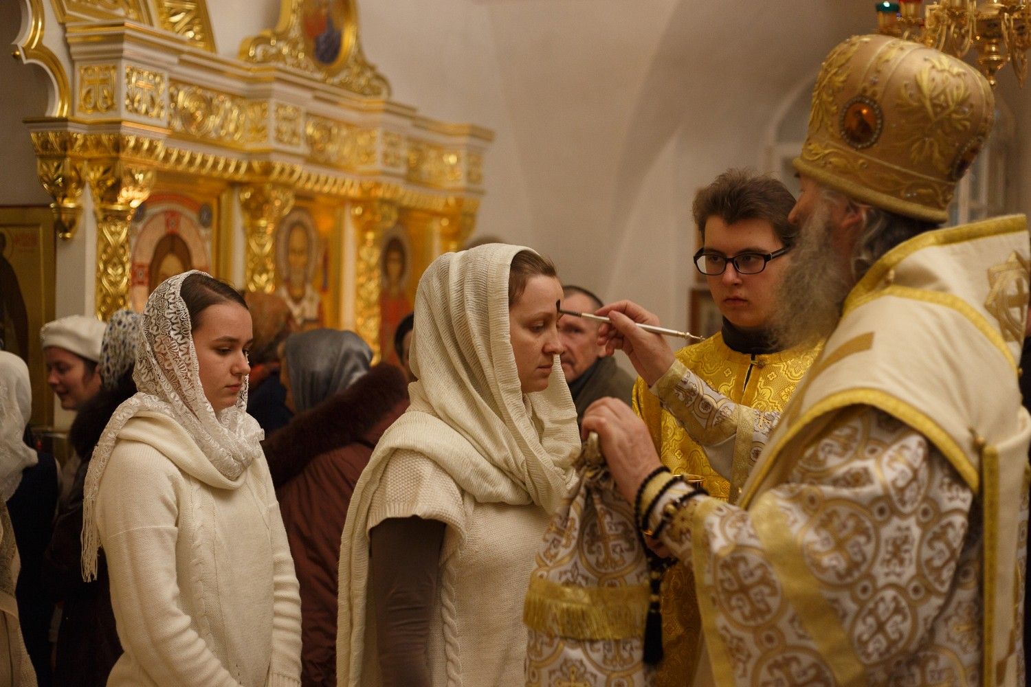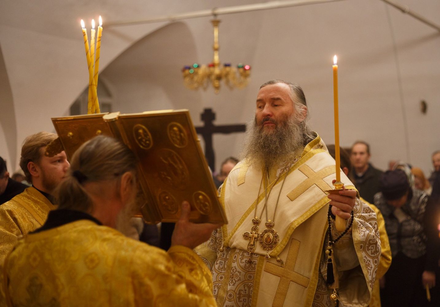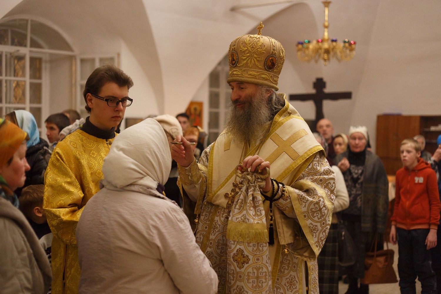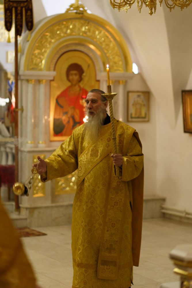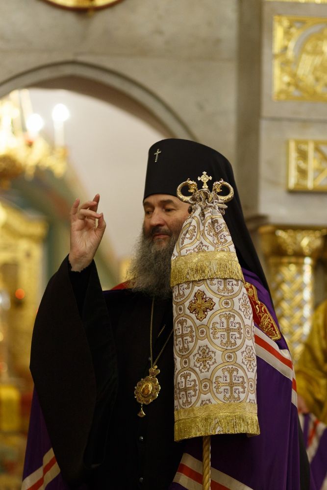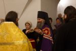 Владыке сослужили: настоятель митрофорный протоиерей Евгений Кутырев и клирики храма: иерей Владимир Глебов и иерей Александр Деревяшкин. После чтения Евангелия Владыка совершил помазание молившихся за богослужением елеем. Богослужебные песнопения исполнил хор Троицкого храма под управлением регента Анны Ярошевич.