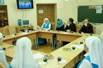 Преподаватель Ю.Ю. Цыкина поделилась впечатлениями от занятий сольфеджио с сестрами милосердия, отметила их отдельные успехи и представила результаты аттестации. Представители переводческой комиссии епархии с интересом выслушали доклад Эльвиры Рыбаковой и приняли участие в обсуждении практической пользы проекта, его перспективы.