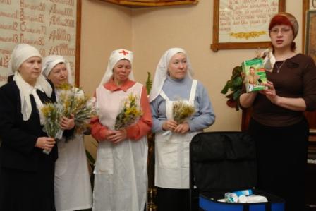 7 марта в здании Православного Центра г. Йошкар-Олы состоялась презентация нового медико-социального проекта «Помощь». Кроме сестер милосердия, принимающих участие в реализации проекта, на ней присутствовали директор Йошкар-Олинского медколледжа Л.В.Рыжков, представитель ООО «Интерфарм» Н.Ю.Трухина, директор фирмы «Медтекс» А.А.Царегородцев.