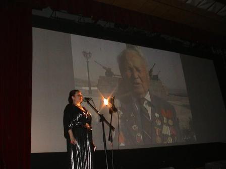 Московская гостья представила публике произведение необычного жанра – фильм-концерт. Вернее, оригинальную его разновидность, в которой кадры кинохроники и интервью транслируются на большом экране, а текст от автора и песни исполняются параллельно, живым голосом. Этот своеобразный моноспектакль посвящён героям ХХ века – уходящему «поколению победителей», ветеранам локальных войн и совсем молодым ребятам, самоотверженно защищающим Родину. Автор размышляет о том, что вкладывают наши современники в понятие «чувство Родины», нужны ли герои российскому обществу и есть ли они сейчас.