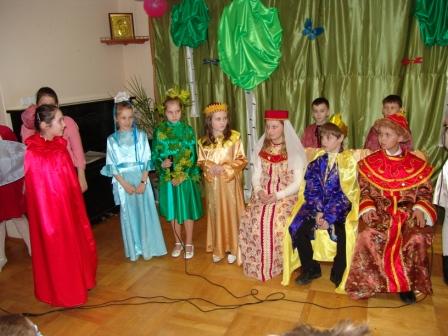 Дети под руководством педагогов подготовили стихи и песни, выучили пасхальные стихиры и ирмосы. Родители и гости с интересом посмотрели спектакль «Царевна Клюковка», в котором участвовали все дети, а их без малого 40 человек!
