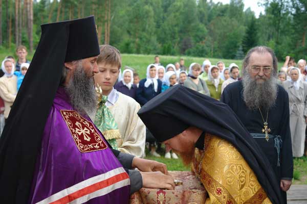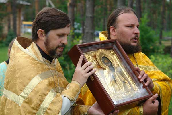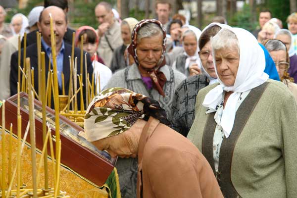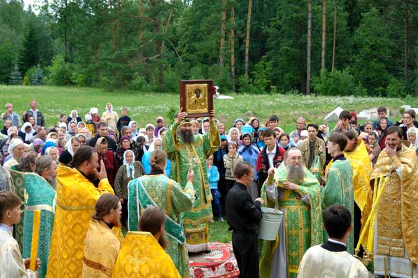Несмотря на проливной дождь по всей республике, небо над пустынью было почти чистым и время от времени озарялось ярким июльским солнцем. Поэтому и поклонение мощам святых угодников Божиих, и по традиции общая для всех праздничная трапеза были организованы на открытом воздухе, прямо во дворе перед храмом.
