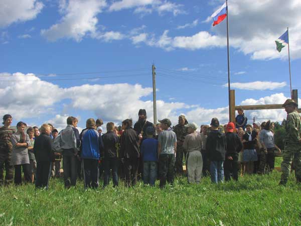 В первый день после Литургии в Килемарском храме и завтрака, участники фестиваля марш-броском добрались до озера и обустроили территорию палаточного лагеря. После этого торжественное открытие фестиваля. Приехавший в гости к детям Владыка пожелал им духовного единения и содружества. А самое главное, чтобы их соревновательность была в духе братского единения и взаимопомощи.