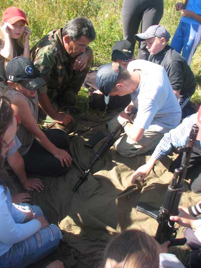 После вкусного обеда, который приготовили повара воскресных школ, дети знакомились друг с другом, осваивались и обживали лагерь. Затем презентация каждой из воскресных школ, а вечером – костер дружбы. Приглашенные на фестиваль патриотические клубы Союза ветеранов афганской войны «Беркут», «Варяг» и «Скиф» спели под гитару свои песни.