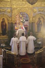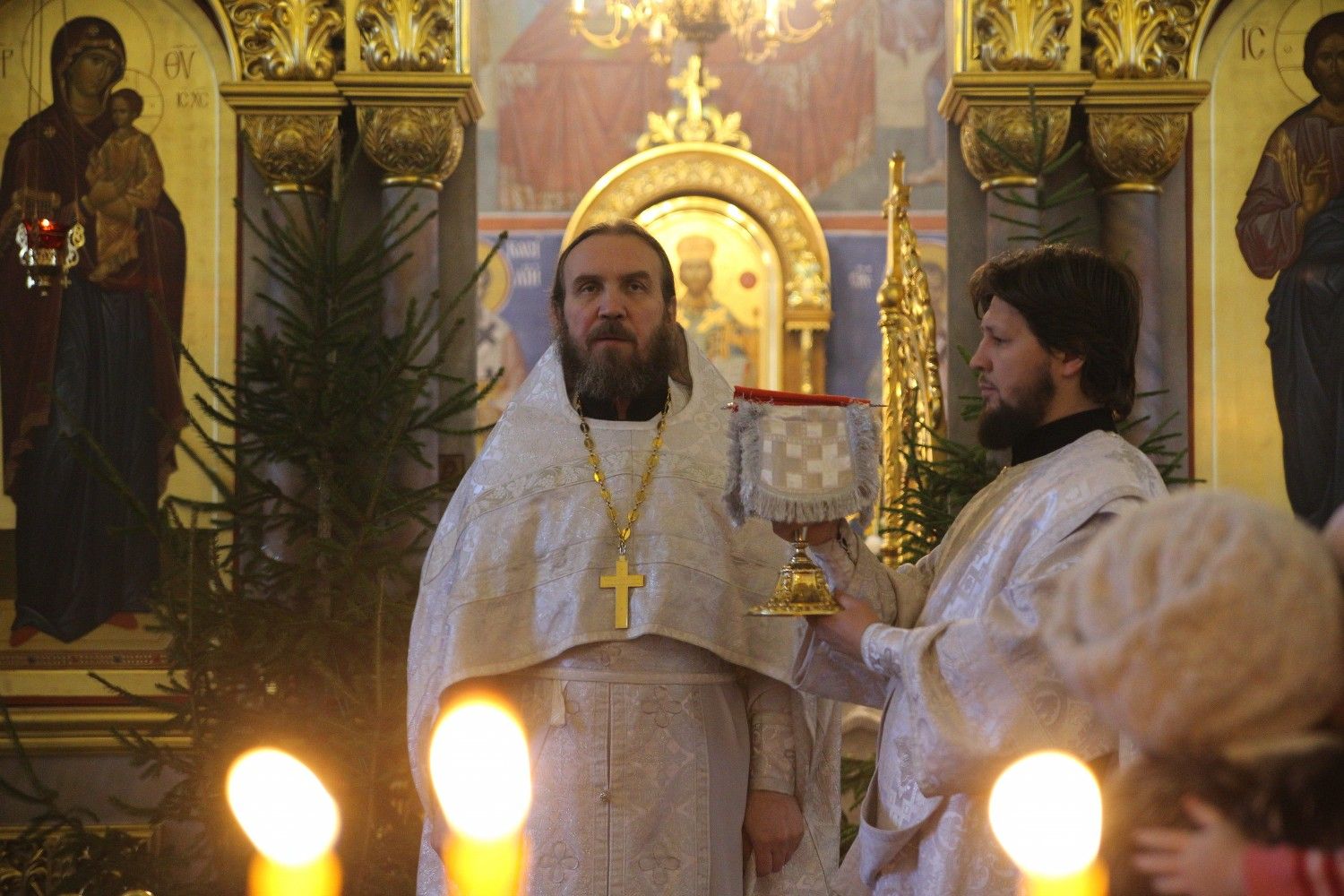 Владыке сослужили: секретарь Епархиального управления иеромонах Серафим (Пасанаев), и клирики храма: иереи Алексий Михеев, Алексий Семенов и Никита Иванов.