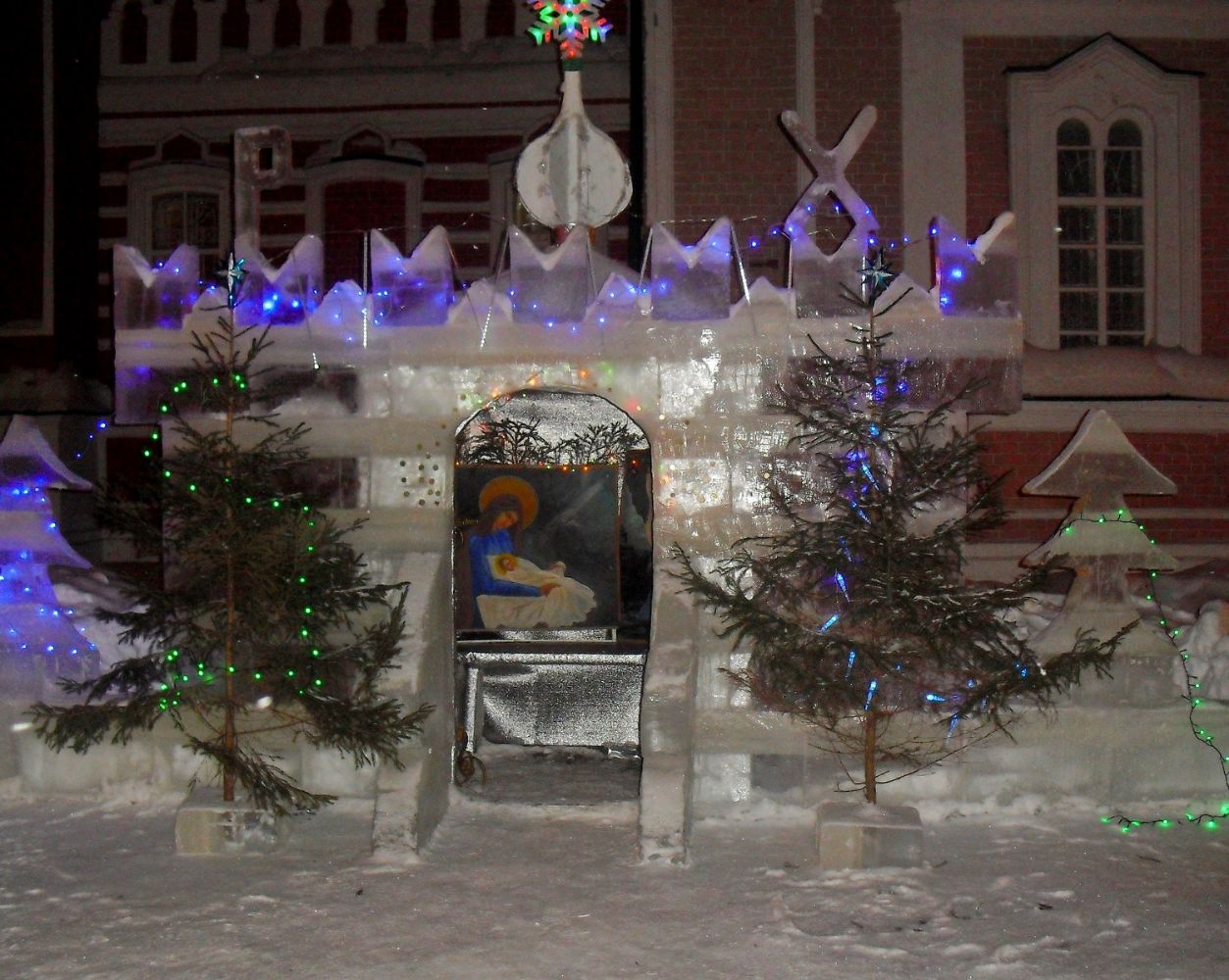 В Святые дни в церковной ограде храма Архангела Михаила п. Юрино засветился радостными огнями Рождественский вертеп, возвещая жителям Юрино о Рождестве Христовом.