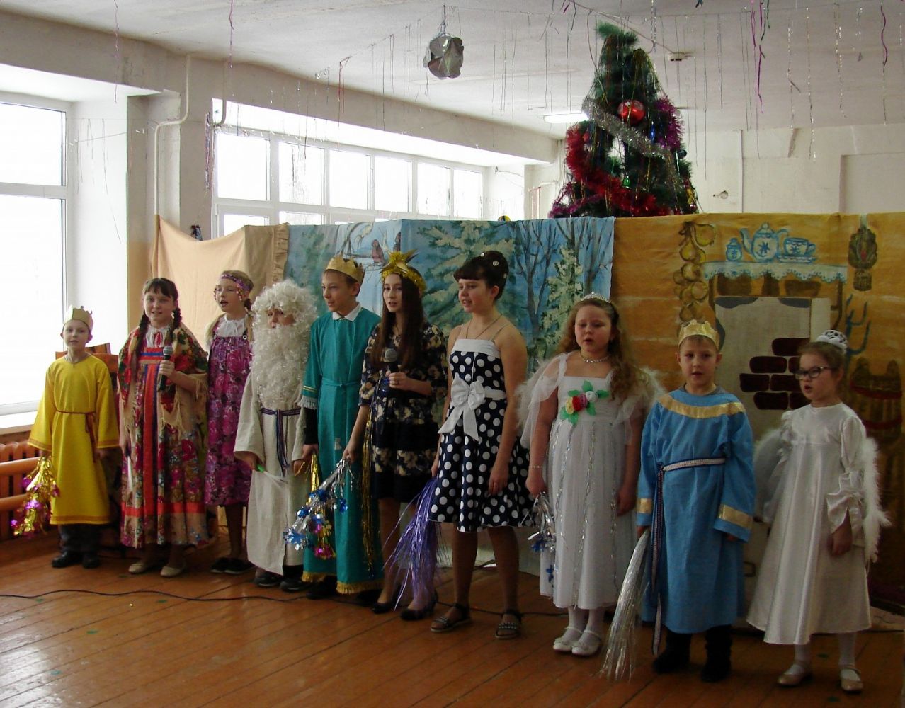 На следующий день радостную весть о Рождении Божественного Младенца воспитанники воскресной школы принесла детям детского сада «Теремок», а еще через день на представление собрались учащиеся начальных классов Юринской средней школы. Открыл представление беседой о великом празднике Рождества Христова и раскрыл детям его смысл настоятель храма Архангела Михаила протоиерей Николай Барсуков.