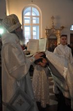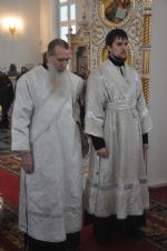 За Литургией Владыка рукоположил клирика Вознесенского собора диакона Владимира Каплунова во пресвитера, а в сан диакона был рукоположен студент Владимирской Духовной семинарии Димитрий Васенев. Рукоположенные священнослужители будут проходить сорокоуст в Вознесенском соборе г. Йошкар-Олы.