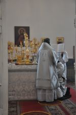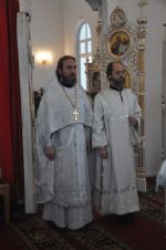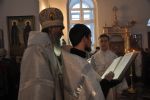 Владыке сослужили: секретарь Епархиального управления иеромонах Серафим (Пасанаев), настоятель Воскресенского собора иерей Алексий Кирюшкин и клирик собора иерей Андрей Кочаков.