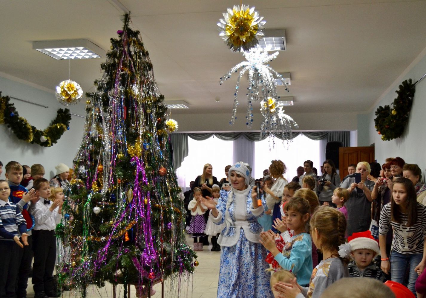 Праздник, посвященный Рождеству Христову, состоял из двух частей. Вначале в холле Дворца дети водили традиционный хоровод вокруг елки. Дед Мороз и Снегурочка проводили веселые конкурсы, слушали многочисленные стихотворения и вручали каждому праздничный подарок.