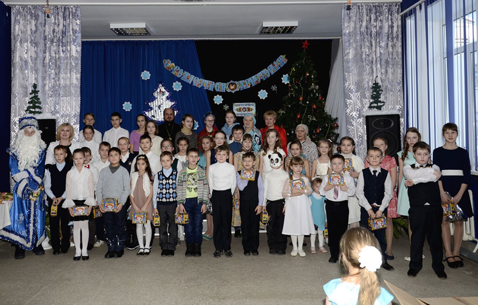 Воспитанники и педагоги подготовили спектакль по мотивам сказки «Морозко» с песнями и стихами о светлом дне Рождества Христова. По завершении выступления настоятель храма протоиерей Николай Ярошевич поздравил всех собравшихся, пожелал здоровья и сил на творение добрых дел, а маленьким артистам вручил сладкие подарки.