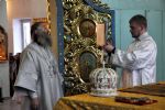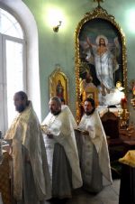 Владыке сослужили: секретарь Епархиального управления иеромонах Серафим (Пасанаев), настоятель храма протоиерей Виталий Михеев и клирики собора: иерей Александр Усков и иерей Алексий Скрябин.