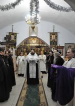 По завершении Божественной литургии было совершено славление празднику Рождества Христова. Владыка всех поздравил с праздником и обратился с проповедью.
