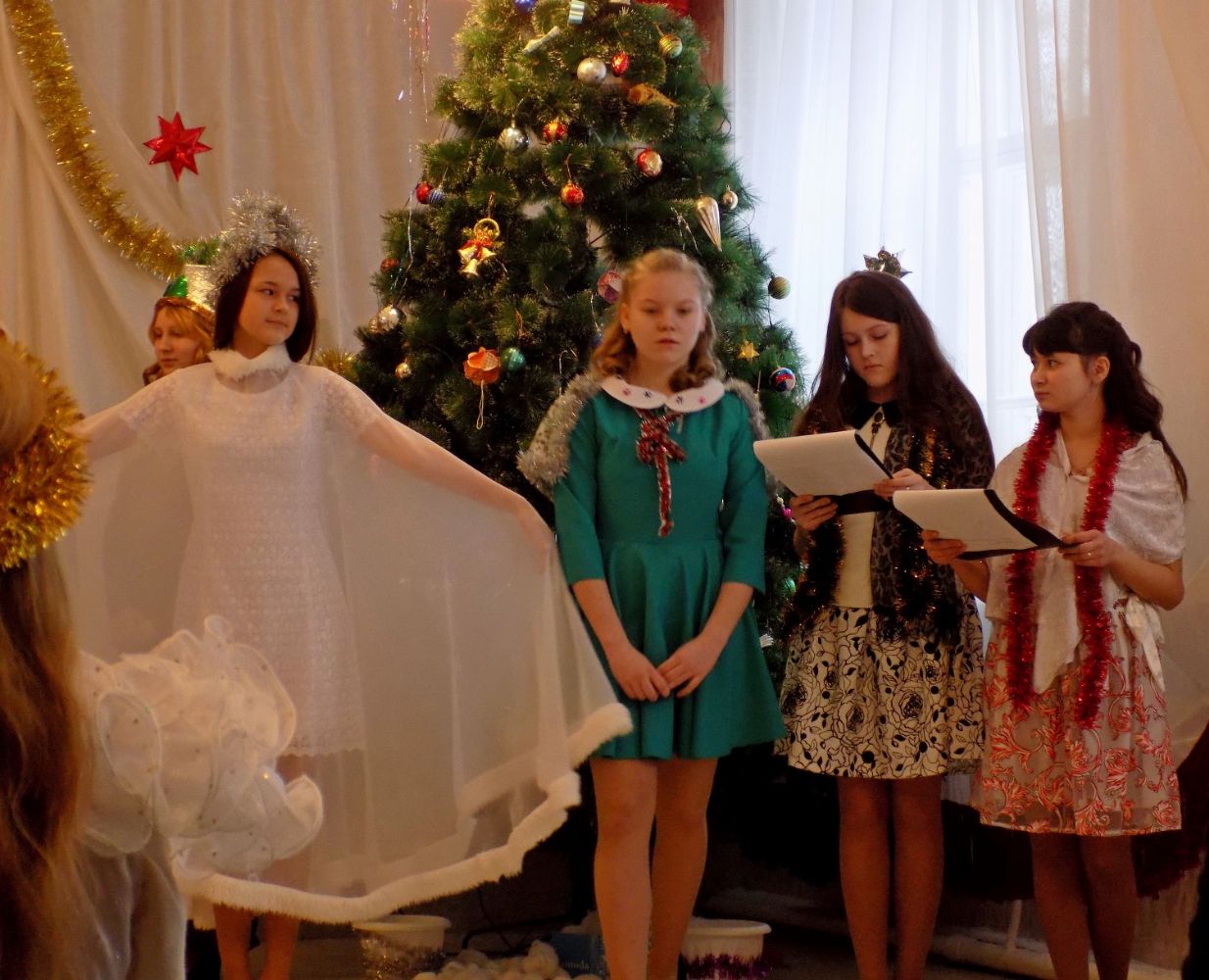 Следующее действие происходило под колокольный звон в другом празднично украшенном зале: сияющая звездами пещера с младенцем и рождественская елка. Дети инсценировали притчу «Предание о рождественской елочке», водили хоровод, рассказывали стихи, веселились, прославляя Рождество Христово.