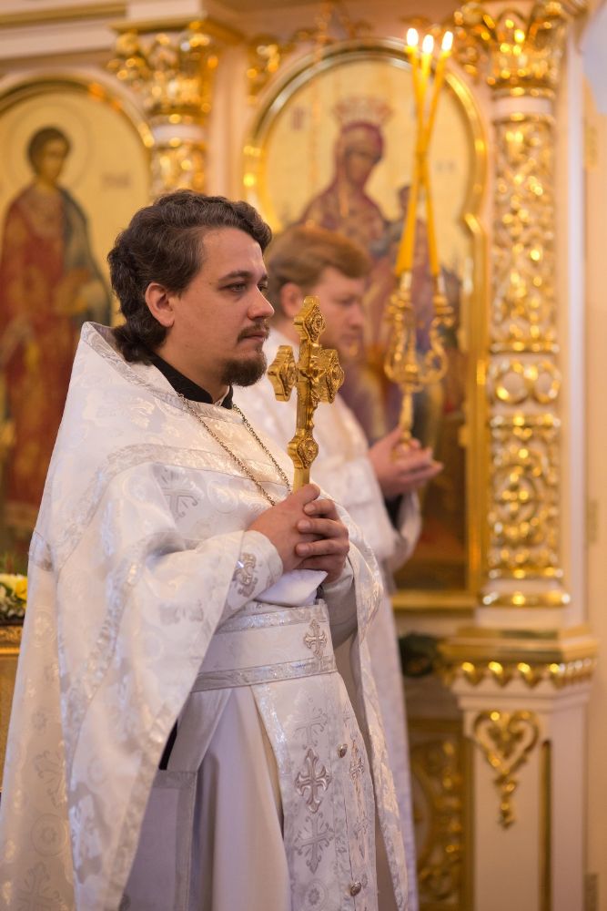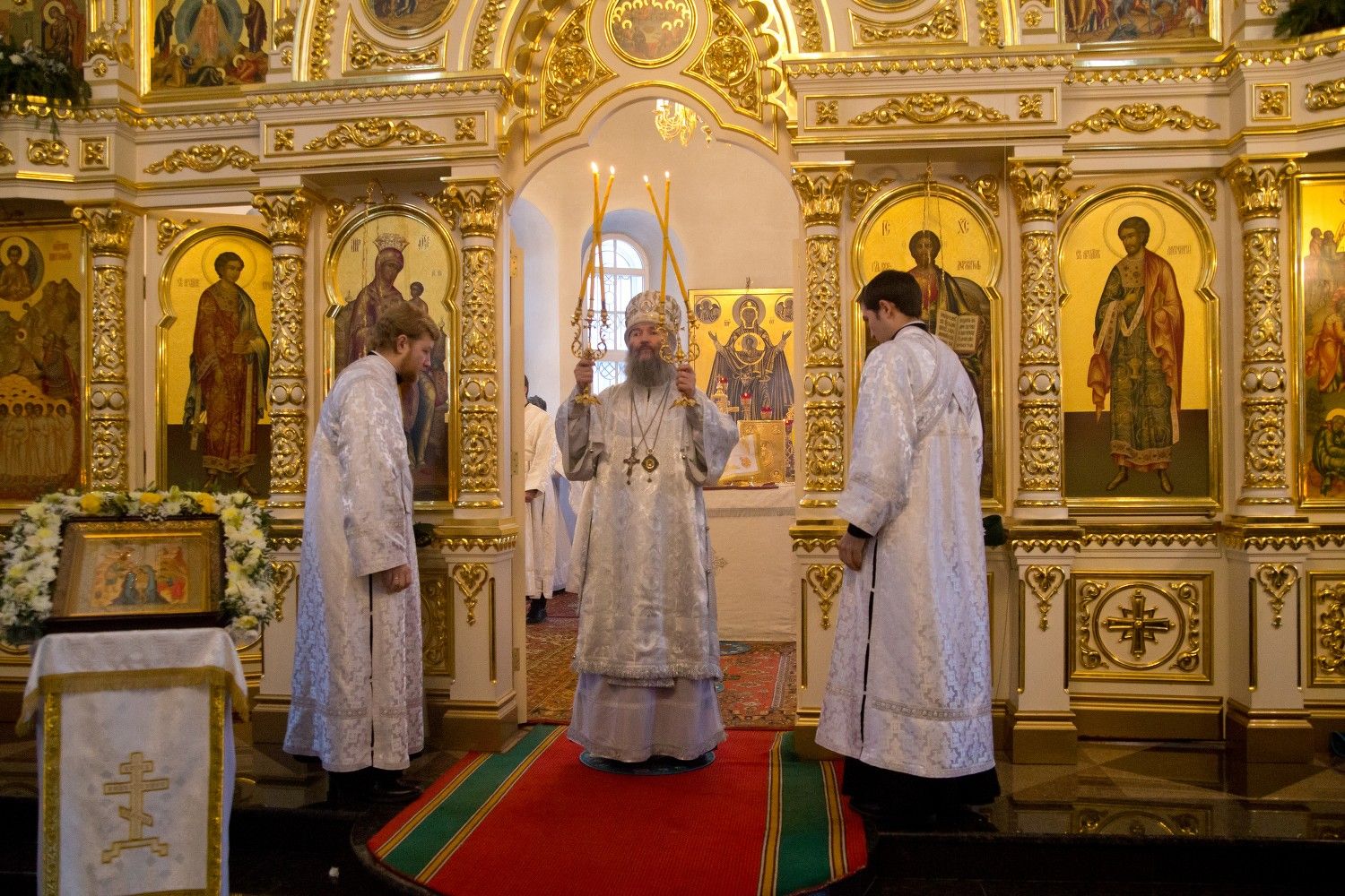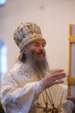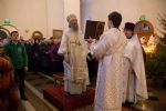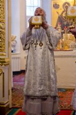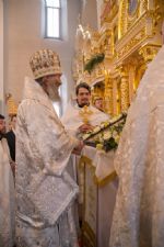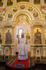 Владыке сослужили: секретарь Епархиального управления иеромонах Серафим (Пасанаев) и настоятель храма иерей Александр Лоскутов. Храм за богослужением был переполнен.