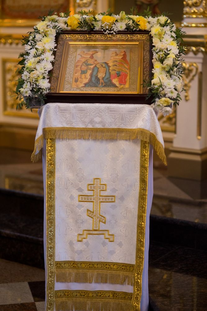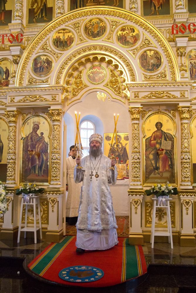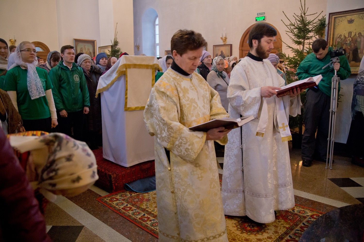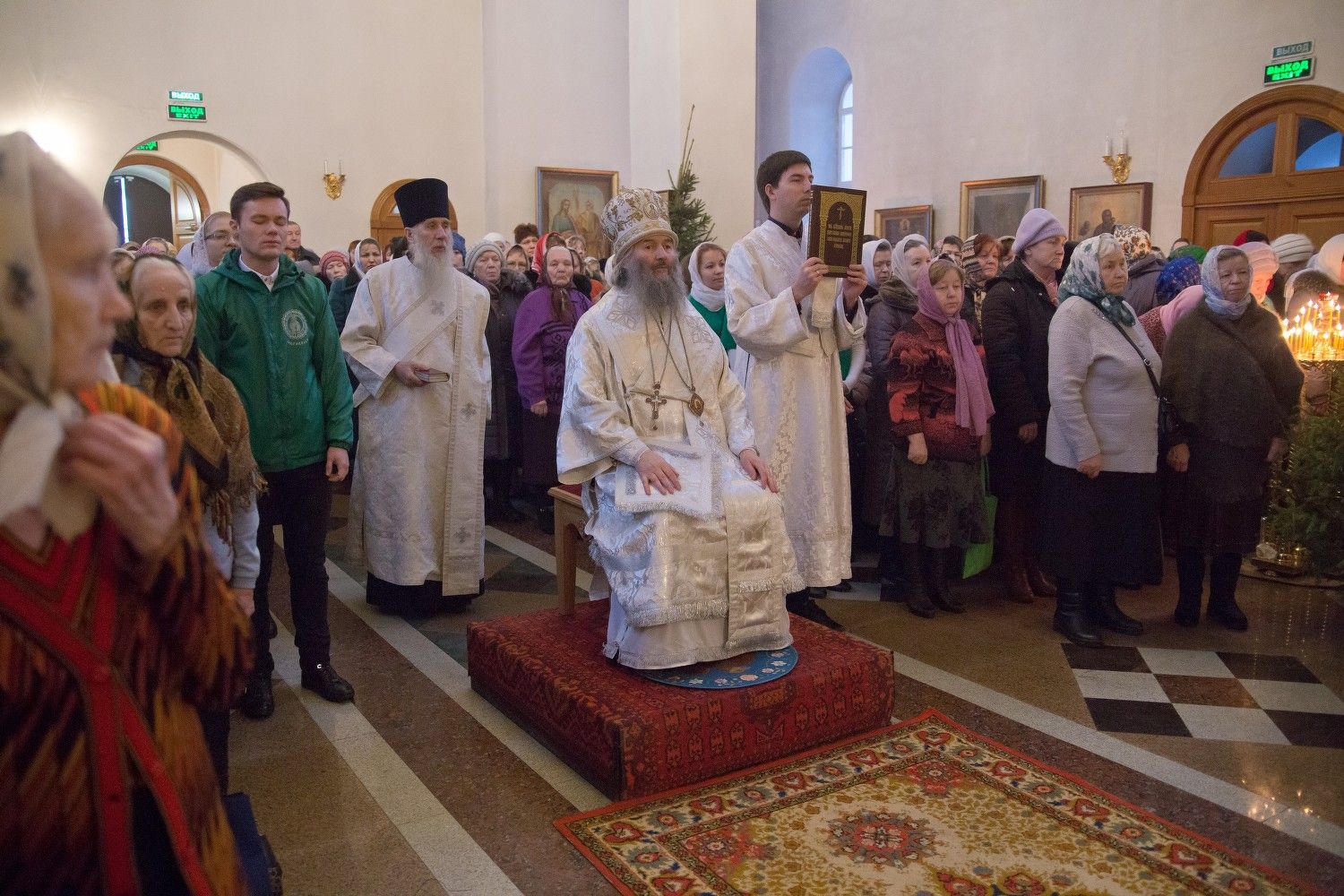 Божественную литургию в праздник Крещения Господня Его Высокопреосвященство архиепископ Йошкар-Олинский и Марийский Иоанн возглавил в храме Рождества Христова г. Йошкар-Олы. Правый придел этого храма освящен в честь Крещения Господня.