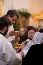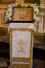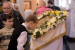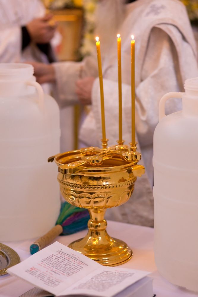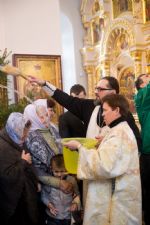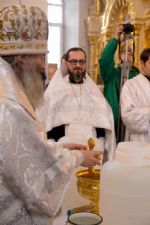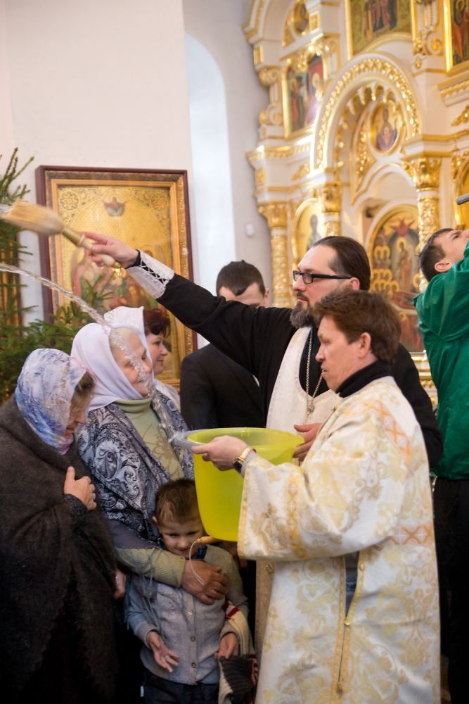 По окончании Литургии Владыка совершил чин Великого освящения воды, после чего всех прихожан окропили святой водой.