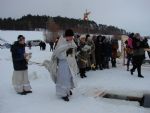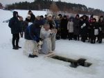 В храме Архангела Михаила п. Юрино после праздничного Богослужения и освящения воды настоятель храма протоиерей Николай Барсуков с прихожанами крестным ходом вышел на реку Волгу к Иорданской купели. После горячей молитвы, Великого освящения воды и смиренного благословения у батюшки, присутствующие заливали воду за воротники, умывались, пили воду из Волги, более решительные готовились к купанию, уже не замечая ни мороза, ни ветра и еще и еще раз поливая себя водой, испытывая при этом необыкновенную радость, прилив бодрости, любви к ближнему своему, желания быть верными и послушными заповедям Божиим и на будущий год искупаться по-настоящему.