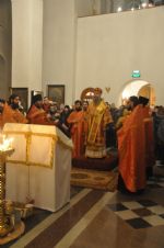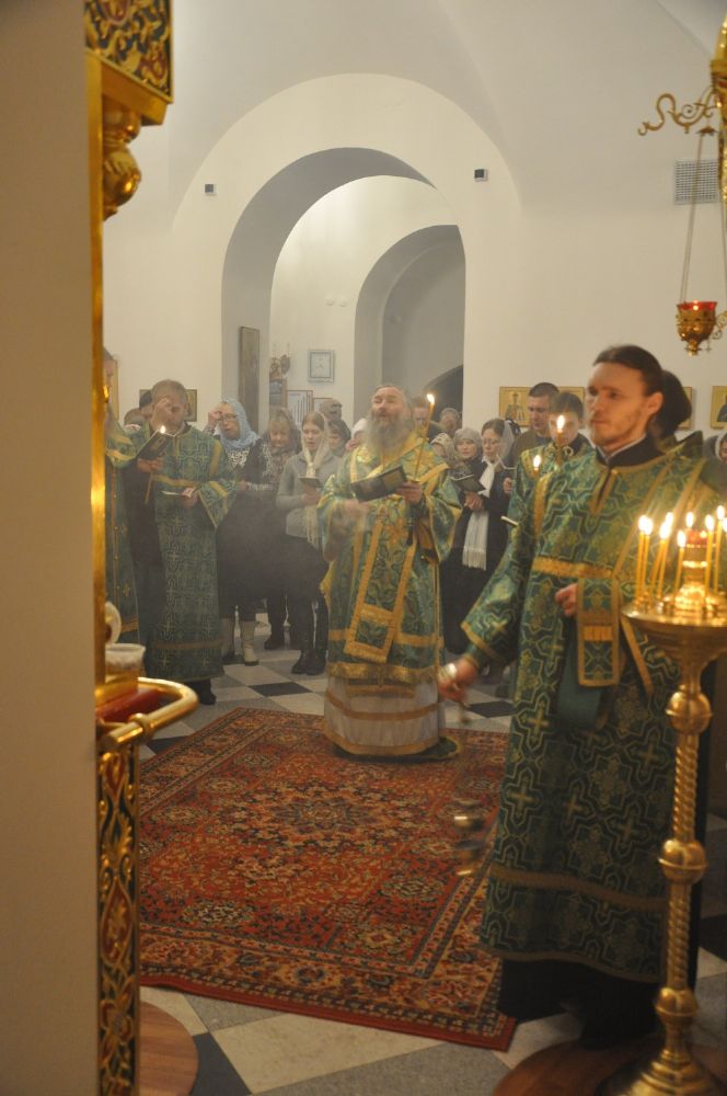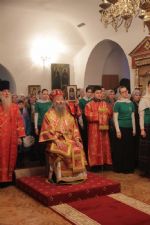 Владыке сослужили: настоятель храма протоиерей Александр Бачурин и клирики храма: иереи Константин Домрачев, Виктор Умрихин и Николай Бабич.