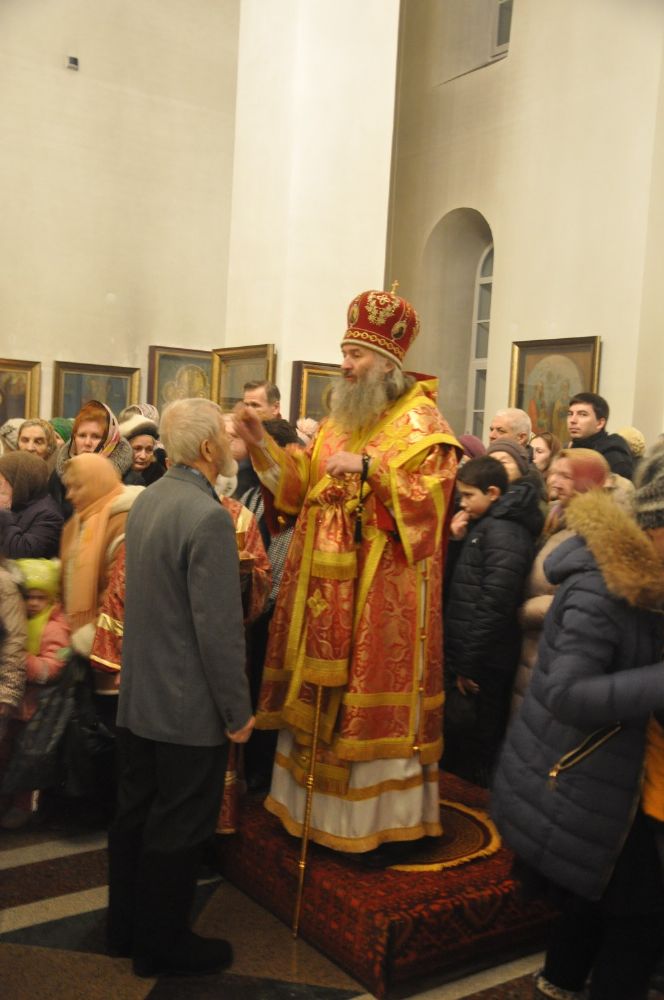 После чтения Евангелия Владыка совершил помазание елеем молившихся за богослужением.