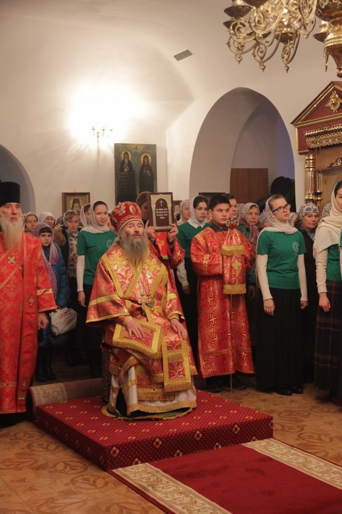 4 февраля, в канун Недели о мытаре и фарисее и памяти Собора новомучеников и исповедников Церкви Русской, Его Высокопреосвященство архиепископ Йошкар-Олинский и Марийский совершил Всенощное бдение в храме Рождества Христова г. Йошкар-Олы, нижний придел которого освящен в честь Священномучеников Марийских.