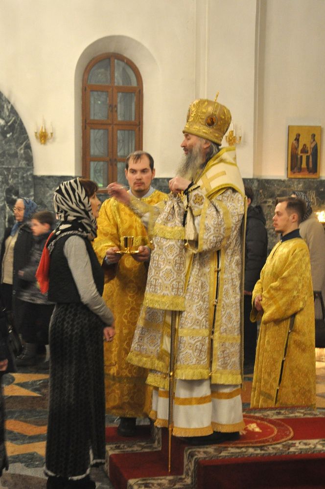 После чтения Евангелия Владыка совершил помазание елеем молившихся за богослужением.