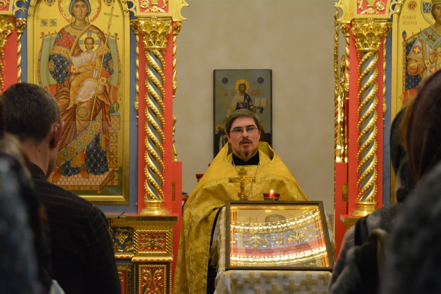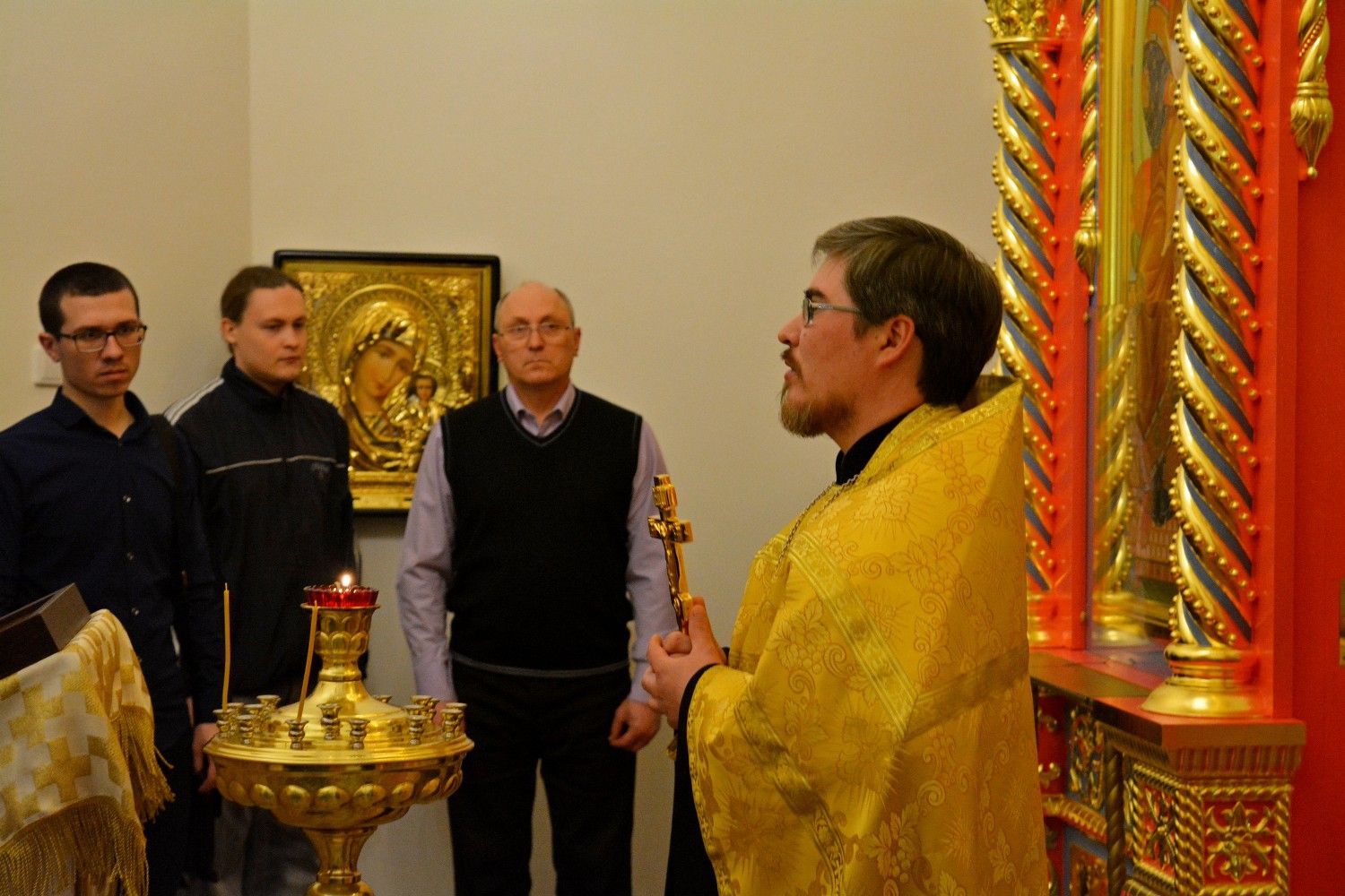Молебен с благодарственными молитвами небесному покровителю курсов отслужил руководитель Православных образовательных курсов иерей Александр Козлов в домовом храме Православного центра в честь святой преподобномученицы Елисаветы.