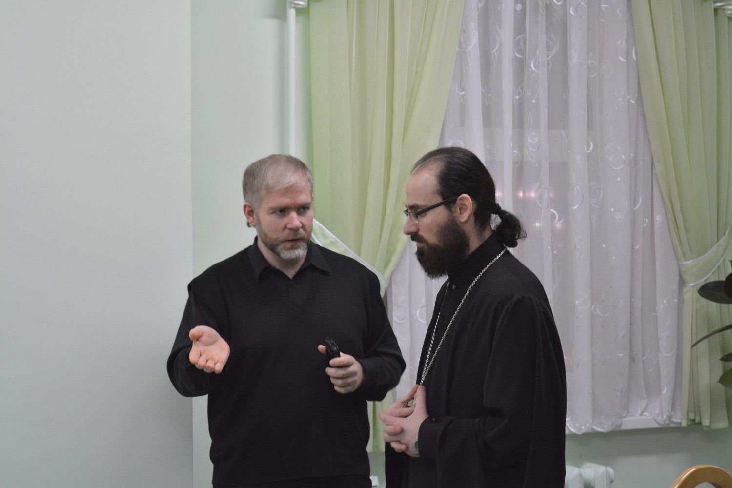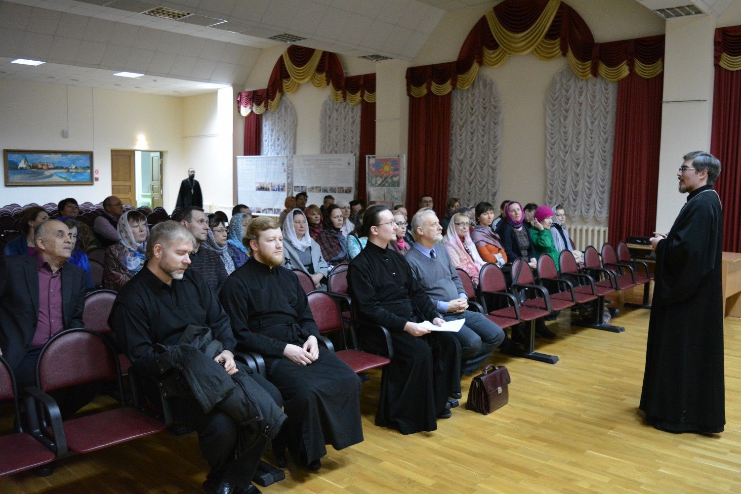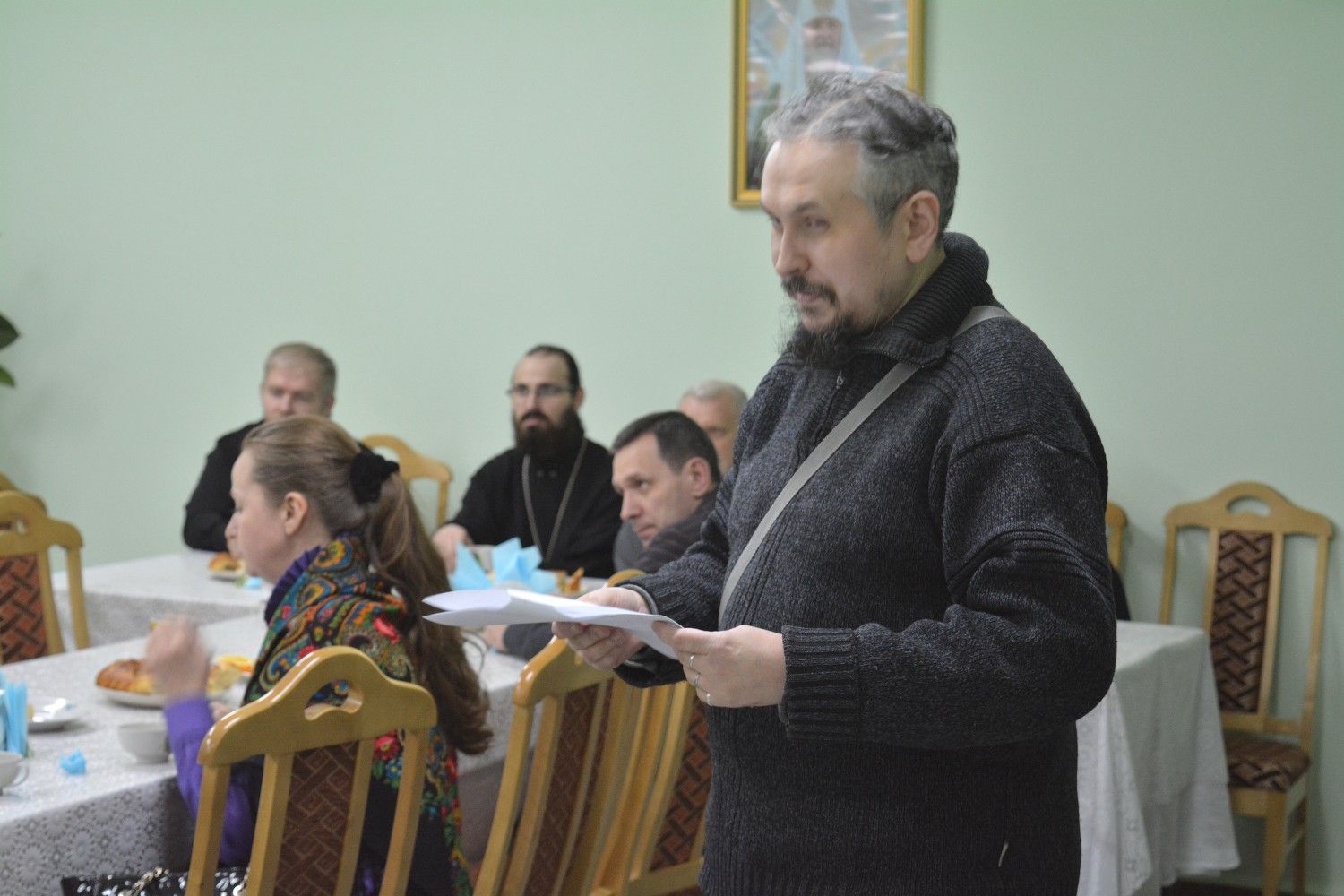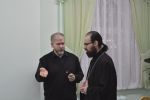 Торжественная часть состоялась в конференц-зале Православного центра и началась с теплых приветственных слов руководителя курсов иерея Александра Козлова. Затем член комиссии по канонизации святых клирик храма Рождества Пресвятой Богородицы Дмитрий Смирнов рассказал курсантам о жизни и подвиге священномученика Адриана Троицкого.