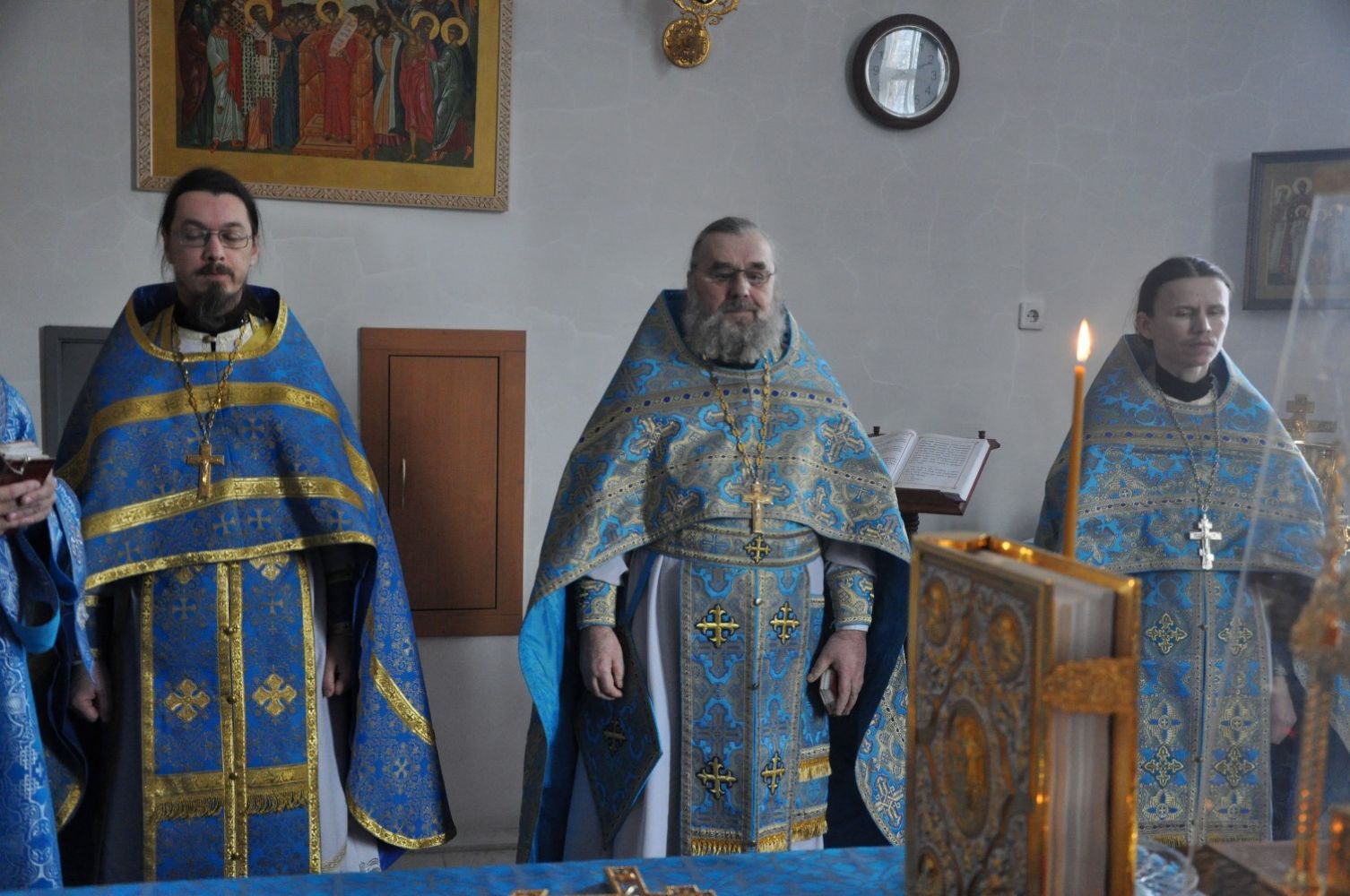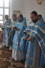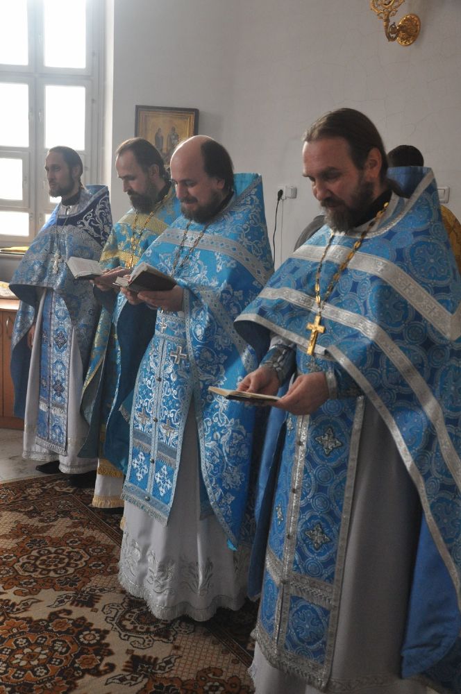 В этот праздничный день Владыке сослужили: секретарь Епархиального управления иеромонах Серафим (Пасанаев), настоятель храма протоиерей Алексий Михайлов, благочинный Пригородного церковного округа, настоятель храма «Всех святых в земле Российской просиявших» п. Советский протоиерей Николай Ярошевич, настоятель храма Покрова Пресвятой Богородицы с. Чкарино протоиерей Валентин Пылаев, настоятель храма иконы Божией Матери «Владимирская» с. Кузнецово иерей Василий Яшмолкин и настоятель Свято-Троицкого храма с. Вятское иерей Вячеслав Мамаев.