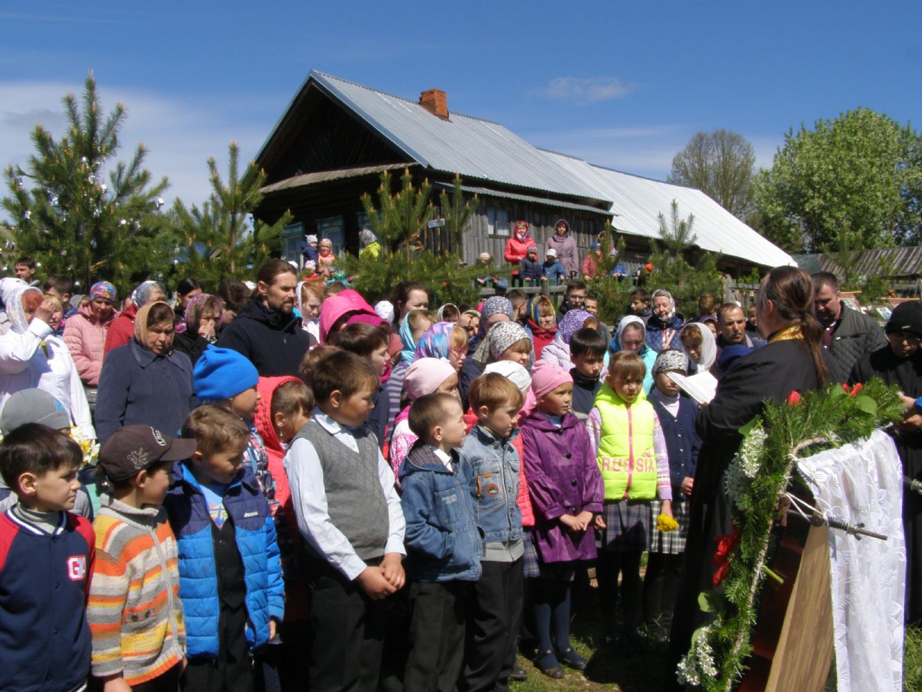 По прибытии на святой источник отец Димитрий совершил молебен. Окропил собравшихся святой водой, а на помазание детей маслом от мощей святителя Николая дал благословение одному из большеоршинских школьников. Отрок достойно справился с послушанием.