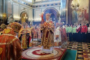 За богослужением пел Патриарший хор Храма Христа Спасителя (регент И.Б. Толкачев) и хор молодежного движения «Православные добровольцы» под управлением Анны Голик.