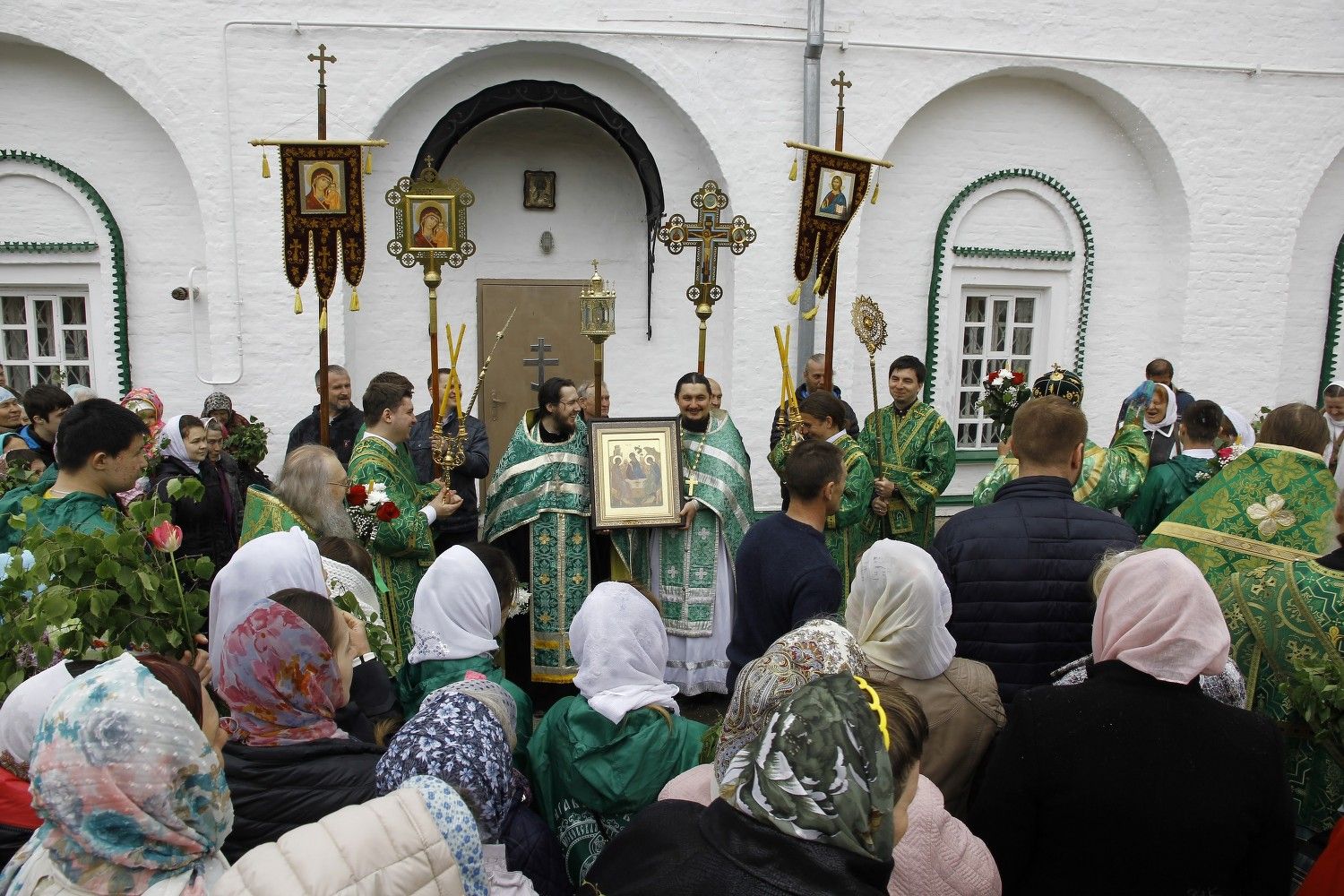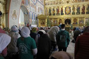 После Литургии Владыка совершил великую вечерню праздника Пятидесятницы с чтением коленопреклонных молитв. В конце вечерни был совершен крестный ход вокруг храма.