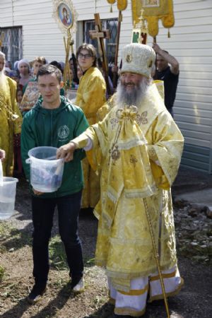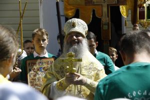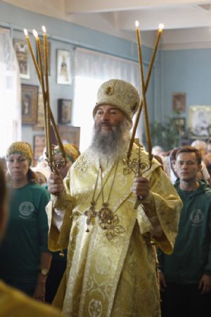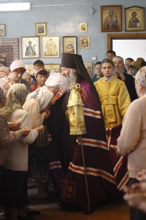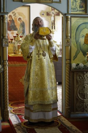 По окончании Божественной литургии владыка Иоанн совершил славление и крестный ход вокруг храма, а также прочитал молитву всем святым, в земле Российской просиявшим, память которых пришлась на это воскресенье.