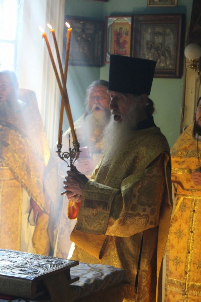 За Божественной Литургией, Его Высокопреосвященству сослужили: настоятель храма митрофорный протоиерей Иоанн Захаров, благочинный Горномарийского церковного округа протоиерей Алексий Сущев, настоятель храма Преображения Господня с. Кушниково Чебоксарской епархии игумен Киприан (Кулаков), клирик Благовещенского кафедрального собора г. Йошкар-Олы иерей Никифор Захаров и духовенство Горномарийского благочиния.